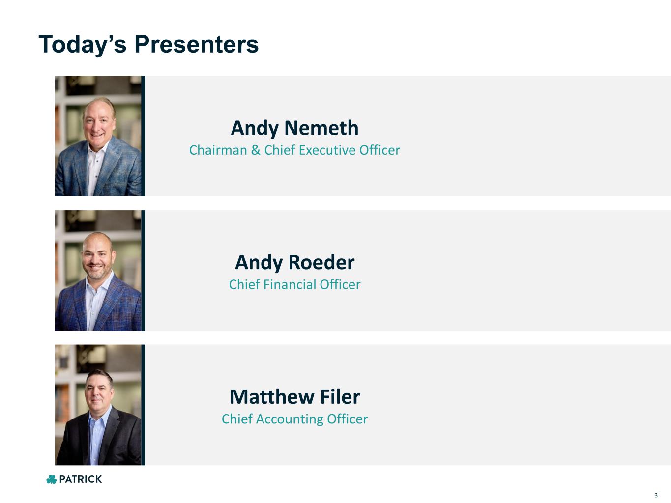Today’s Presenters Andy Nemeth Chairman & Chief Executive Officer Andy Roeder Chief Financial Officer 3 Matthew Filer Chief Accounting Officer