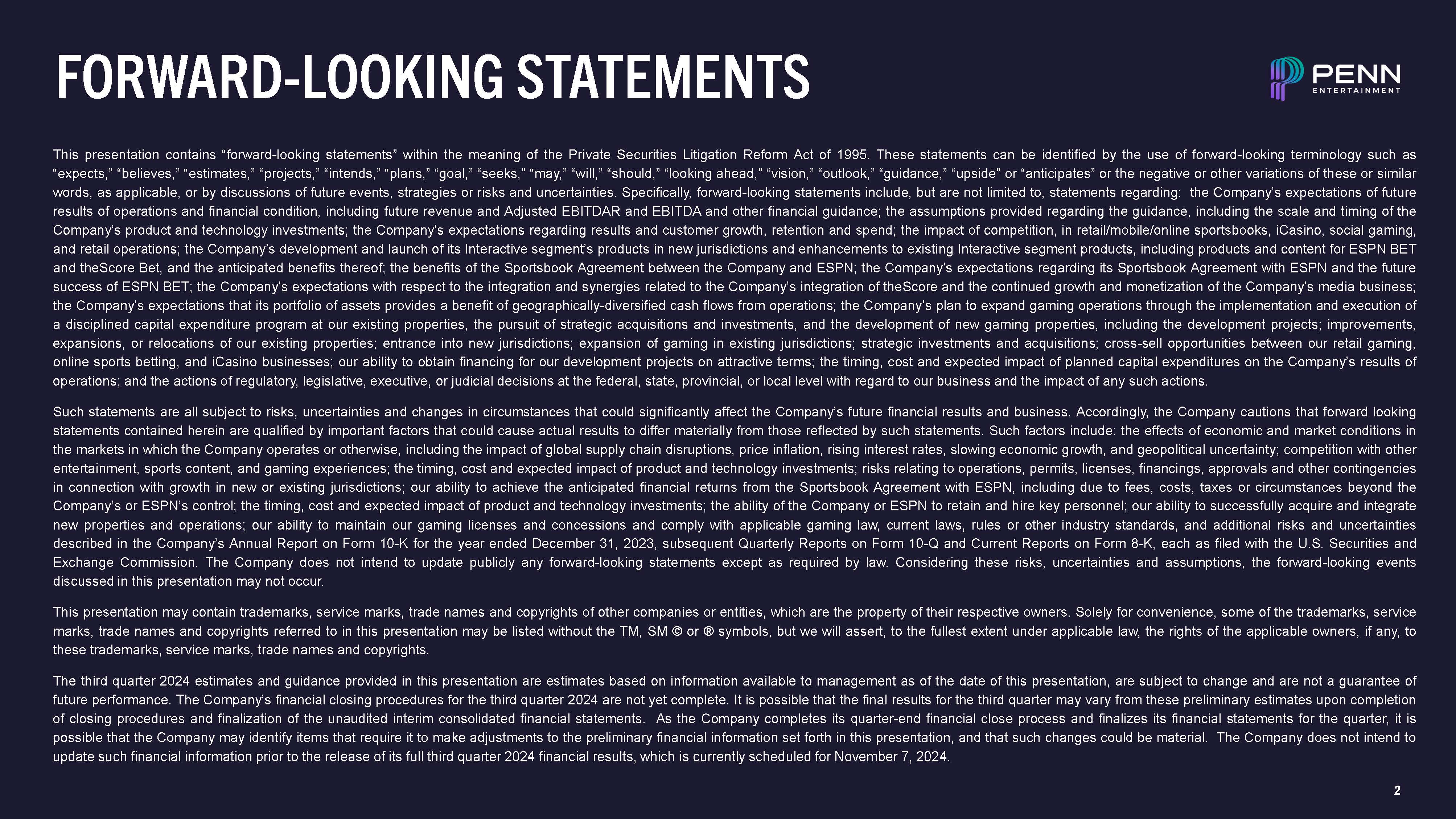 PENN Entertainment, Inc. Investor Update as of October 7, 2024