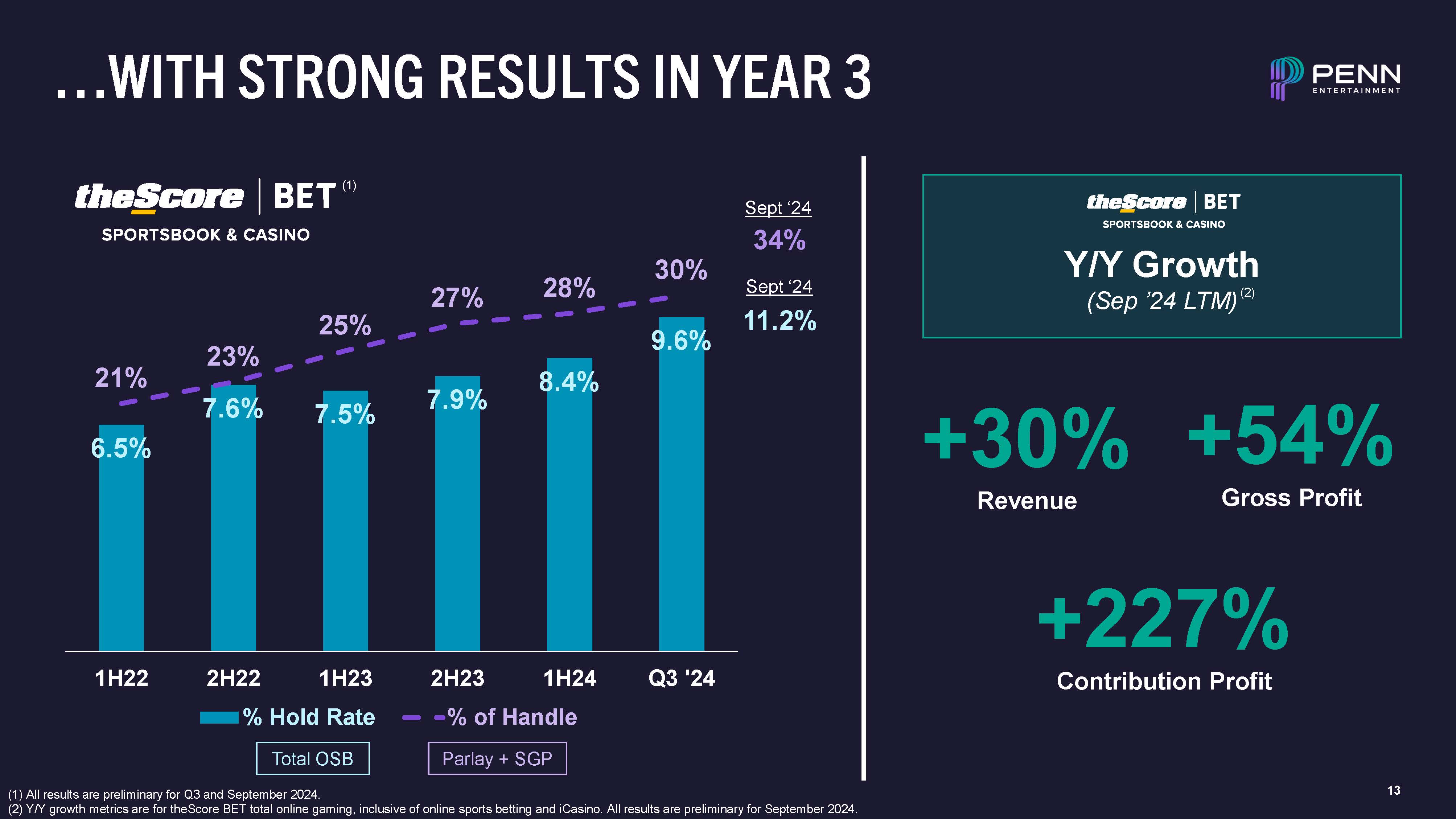 PENN Entertainment, Inc. (Nasdaq: PENN) (the “Company”) today announced select preliminary financial results for the third quarter ended September 30, 2024. The Company