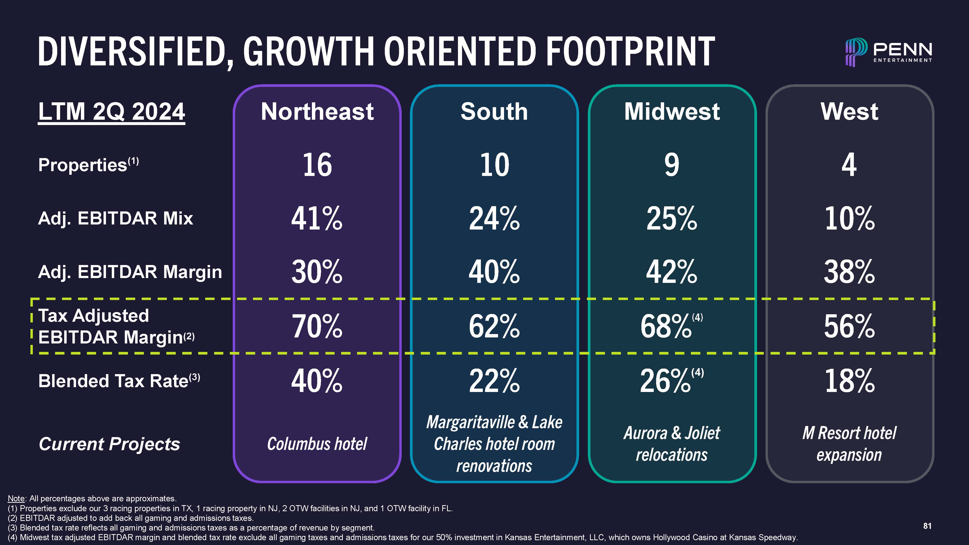 Interactive Adjusted EBITDA are the Company's reportable segment GAAP measures. Management utilizes Retail Operations Adjusted EBITDAR as the primary profit measure for its Northeast, South, West, and Midwest segments. Management utilizes