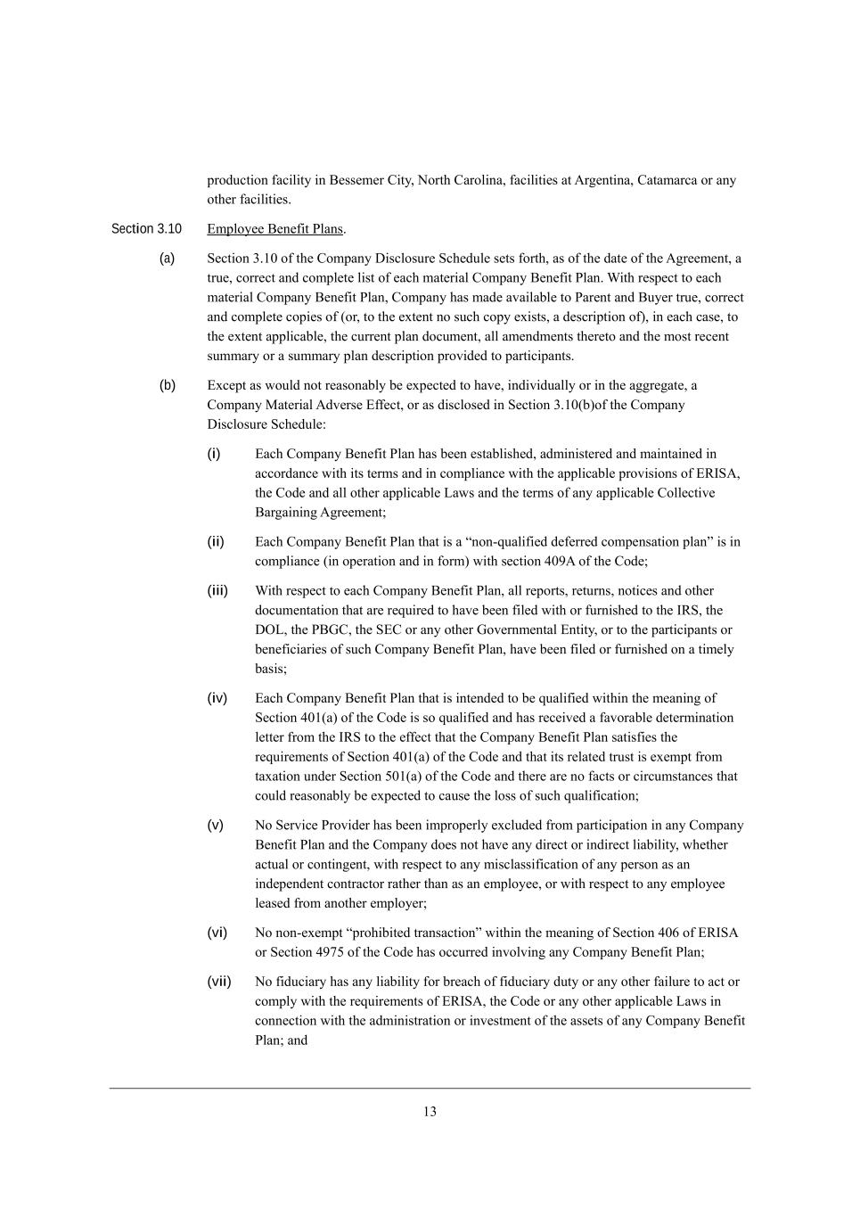 7 h[gk_h[ Wdo Yedi[dj eh ej^[h WYj_ed Xo Wdo J[hied kdZ[h* Yedij_jkj[ W Z[\Wkbj* eh Wd [l[dj j^Wj* m_j^ eh m_j^ekj dej_Y[ eh bWfi[ e\ j_c[ eh Xej^* mekbZ Yedij_jkj[ W Z[\Wkbj* kdZ[h* eh YWki[ eh f[hc_j j^[ j[hc_dWj_ed* YWdY[bbWj_ed* WYY[b[hWj_ed eh ej^[h Y^Wd][ e\ Wdo h_]^j eh eXb_]Wj_ed eh j^[ beii e\ Wdo X[d[\_j je m^_Y^ =ecfWdo eh Wdo =ecfWdo MkXi_Z_Who _i [dj_jb[Z kdZ[h Wdo fhel_i_ed e\ Wdo =ecfWdo GWj[h_Wb =edjhWYj eh (_l) h[ikbj _d j^[ Yh[Wj_ed eh _cfei_j_ed e\ Wdo F_[d ed Wdo [gk_jo _dj[h[ij* Wii[j eh fhef[hjo e\ =ecfWdo eh Wdo =ecfWdo MkXi_Z_Who ej^[h j^Wd Wdo =ecfWdo J[hc_jj[Z F_[di* m_j^ edbo ikY^ [nY[fj_edi* _d j^[ YWi[ e\ [WY^ e\ YbWki[i (__) j^hek]^ (_l) WXel[* Wi ^Wl[ dej ^WZ WdZ mekbZ dej h[WiedWXbo X[ [nf[Yj[Z je ^Wl[* _dZ_l_ZkWbbo eh _d j^[ W]]h[]Wj[* W =ecfWdo GWj[h_Wb ;Zl[hi[ ?\\[Yj, Section 3.4 L[fehji WdZ @_dWdY_Wb MjWj[c[dji, (a) =ecfWdo* j^[ =ecfWdo MkXi_Z_Wh_[i WdZ Wdo fh[Z[Y[iieh [dj_j_[i j^[h[je ^Wl[ \_b[Z eh \khd_i^[Z* Wi Wffb_YWXb[* ed W j_c[bo XWi_i* Wbb \ehci* ijWj[c[dji* Y[hj_\_YWj_edi* h[fehji WdZ ZeYkc[dji h[gk_h[Z je X[ \_b[Z eh \khd_i^[Z Xo j^[c m_j^ eh je j^[ M?= i_dY[ j^[ ;ffb_YWXb[ >Wj[ (j^[ \ehci* Y[hj_\_YWj_edi* ijWj[c[dji* h[fehji WdZ ZeYkc[dji \_b[Z m_j^ eh \khd_i^[Z je j^[ M?= i_dY[ j^[ ;ffb_YWXb[ >Wj[ WdZ j^ei[ \_b[Z m_j^ eh \khd_i^[Z je j^[ M?= ikXi[gk[dj je j^[ ZWj[ e\ j^_i ;]h[[c[dj* je][j^[h m_j^ Wdo [n^_X_ji WdZ iY^[Zkb[i j^[h[je WdZ Wdo _d\ehcWj_ed _dYehfehWj[Z Xo h[\[h[dY[ j^[h[_d* _d [WY^ YWi[ Wi Wc[dZ[Z i_dY[ j^[ ZWj[ e\ j^[_h \_b_d] WdZ fh_eh je j^[ ZWj[ ^[h[e\* Yebb[Yj_l[bo* j^[ rCompany SEC Documentss), ?WY^ e\ j^[ =ecfWdo M?= >eYkc[dji* Wj j^[ j_c[ e\ _ji \_b_d] eh X[_d] \khd_i^[Z* Yecfb_[Z eh* _\ dej o[j \_b[Z eh \khd_i^[Z* m_bb Wj j^[ j_c[ e\ X[_d] \_b[Z eh \khd_i^[Z Yecfbo* _d [WY^ YWi[* _d Wbb cWj[h_Wb h[if[Yji m_j^ j^[ Wffb_YWXb[ h[gk_h[c[dji e\ j^[ M?=, ;i e\ j^[_h h[if[Yj_l[ ZWj[i (eh* _\ Wc[dZ[Z fh_eh je j^[ ZWj[ e\ j^_i ;]h[[c[dj* Wi e\ j^[ ZWj[ e\ ikY^ Wc[dZc[dj)* [nY[fj Wi mekbZ dej X[ cWj[h_Wb je =ecfWdo WdZ _ji MkXi_Z_Wh_[i* jWa[d Wi W m^eb[* j^[ =ecfWdo M?= >eYkc[dji Z_Z dej* WdZ [WY^ =ecfWdo M?= >eYkc[dj \_b[Z m_j^ eh \khd_i^[Z je j^[ M?= ikXi[gk[dj je j^[ ZWj[ e\ j^_i ;]h[[c[dj m_bb dej* YedjW_d Wdo kdjhk[ ijWj[c[dj e\ W cWj[h_Wb \WYj eh ec_j je ijWj[ W cWj[h_Wb \WYj h[gk_h[Z je X[ ijWj[Z j^[h[_d eh d[Y[iiWho je cWa[ j^[ ijWj[c[dji cWZ[ j^[h[_d* _d b_]^j e\ j^[ Y_hYkcijWdY[i _d m^_Y^ j^[o m[h[ cWZ[* dej c_ib[WZ_d], ;i e\ j^[ ZWj[ e\ j^_i ;]h[[c[dj* je j^[ ademb[Z][ e\ =ecfWdo* ded[ e\ j^[ =ecfWdo M?= >eYkc[dji _i j^[ ikX`[Yj e\ ed]e_d] M?= h[l_[m* _dgk_ho* _dl[ij_]Wj_ed eh Y^Wbb[d][ eh j^[ ikX`[Yj e\ ekjijWdZ_d] eh kdh[iebl[Z M?= Yecc[dji, ;bba[c F_c_j[Z WdZ _ji ikXi_Z_Wh_[i ^Wl[ \_b[Z eh \khd_i^[Z* Wi Wffb_YWXb[* ed W j_c[bo XWi_i* Wbb \ehci* ijWj[c[dji* Y[hj_\_YWj_edi* h[fehji WdZ ZeYkc[dji h[gk_h[Z je X[ \_b[Z eh \khd_i^[Z Xo j^[c m_j^ eh je ;MC= X[jm[[d DWdkWho /* 0.0/ WdZ DWdkWho 2* 0.02 (Yebb[Yj_l[bo* j^[ rAnaconda ASIC Documentss), ?WY^ e\ j^[ ;dWYedZW ;MC= >eYkc[dji* Wj j^[ j_c[ e\ _ji \_b_d] eh X[_d] \khd_i^[Z Yecfb_[Z _d Wbb cWj[h_Wb h[if[Yji m_j^ j^[ Wffb_YWXb[ h[gk_h[c[dji e\ j^[ ;kijhWb_Wd ;Yj WdZ j^[ Wffb_YWXb[ h[gk_h[c[dji e\ ;MC=, ;i e\ j^[_h h[if[Yj_l[ ZWj[i* [nY[fj Wi mekbZ dej X[ cWj[h_Wb je ;bba[c F_c_j[Z WdZ _ji ikXi_Z_Wh_[i* jWa[d Wi W m^eb[* j^[ ;dWYedZW ;MC= >eYkc[dji Z_Z dej YedjW_d Wdo kdjhk[ ijWj[c[dj e\ W cWj[h_Wb \WYj eh ec_j je ijWj[ W cWj[h_Wb \WYj h[gk_h[Z je X[ ijWj[Z j^[h[_d eh d[Y[iiWho je cWa[ j^[ ijWj[c[dji cWZ[ j^[h[_d* _d b_]^j e\ j^[ Y_hYkcijWdY[i _d m^_Y^ j^[o m[h[ cWZ[* dej c_ib[WZ_d], ;i e\ j^[ ZWj[ e\ j^_i ;]h[[c[dj* je j^[ =ecfWdoui ademb[Z][* ded[ e\ j^[ ;dWYedZW ;MC= >eYkc[dji _i j^[ ikX`[Yj e\ ed]e_d] ;MC= h[l_[m* _dgk_ho* _dl[ij_]Wj_ed eh Y^Wbb[d][ eh j^[ ikX`[Yj e\ ekjijWdZ_d] eh kdh[iebl[Z ;MC= Yecc[dji, (b) ?WY^ e\ j^[ WkZ_j[Z WdZ kdWkZ_j[Z Yedieb_ZWj[Z \_dWdY_Wb ijWj[c[dji _dYbkZ[Z _d eh _dYehfehWj[Z Xo h[\[h[dY[ _dje j^[ =ecfWdo M?= >eYkc[dji (_dYbkZ_d] j^[ h[bWj[Z dej[i WdZ iY^[Zkb[i)