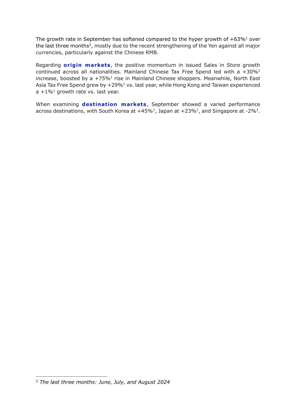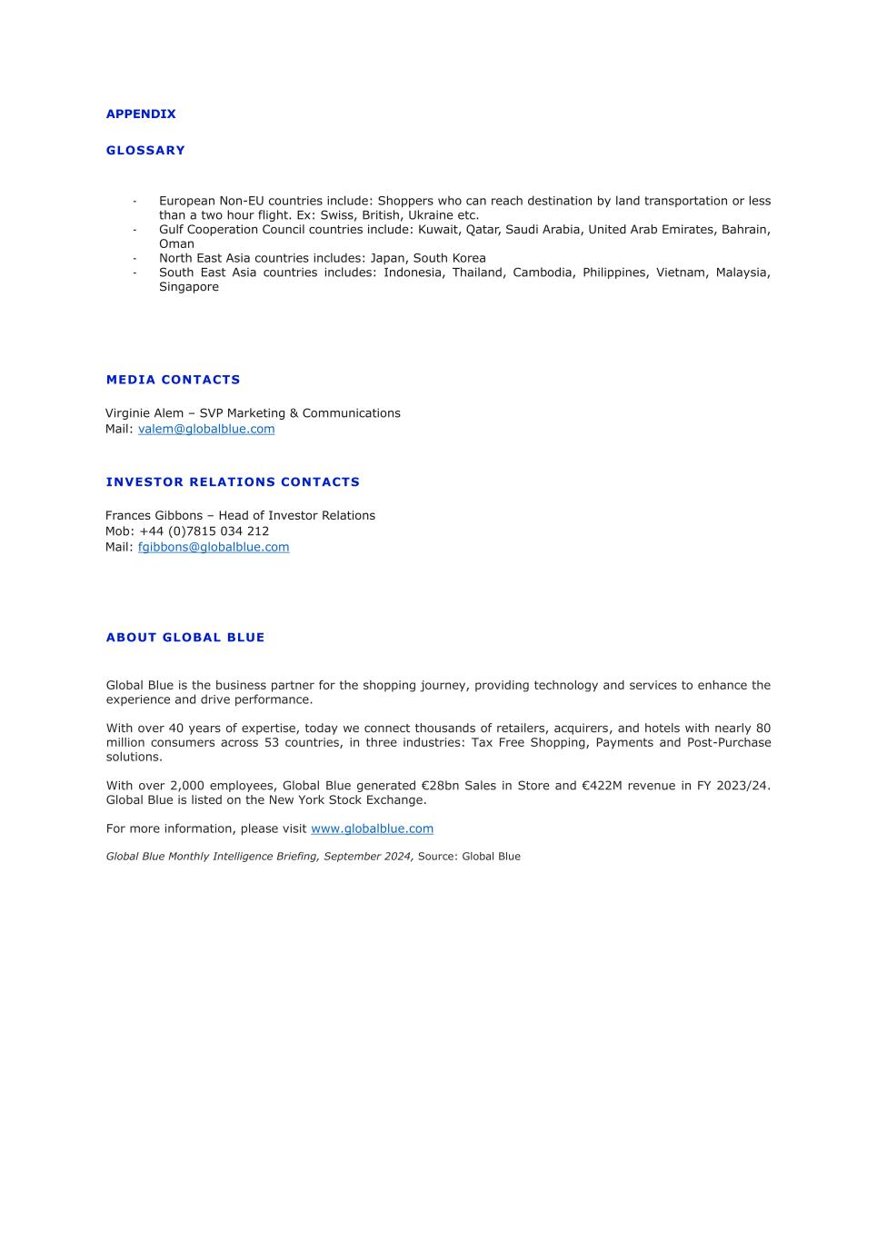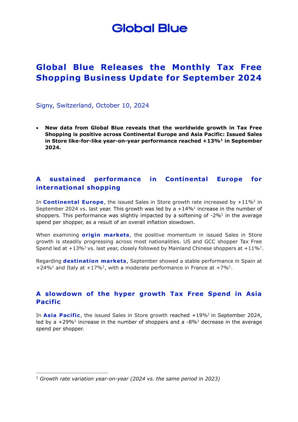 On October 10, 2024, Global Blue Group Holding AG (the "Company") issued a press release, attached as exhibit 99.1 to this Form 6-K, providing a business update on the worldwide Tax Free Shopping growth across Continental Europe and Asia Pacific.