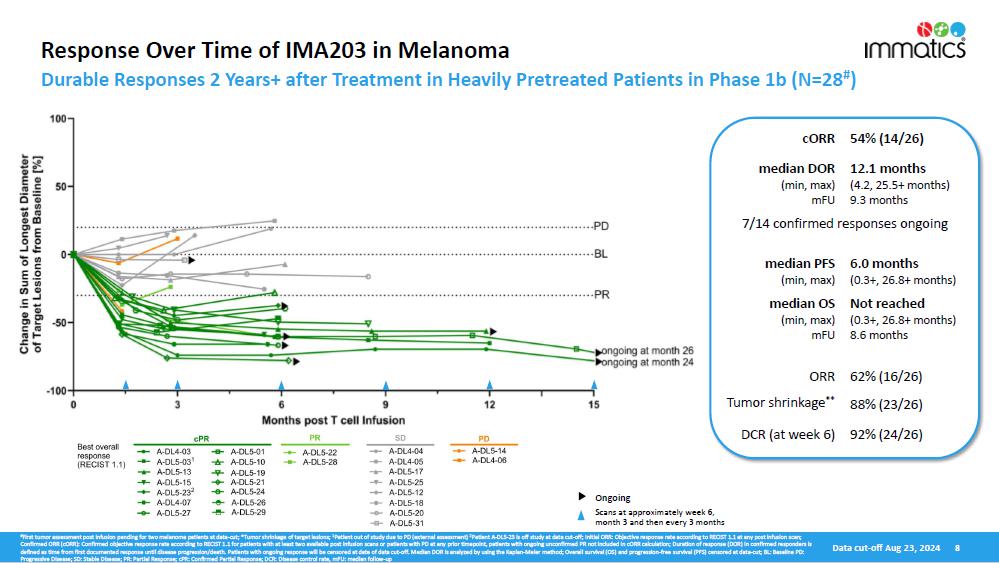 Response Over Time of IMA203 in Melanoma (N=28 2, 3)