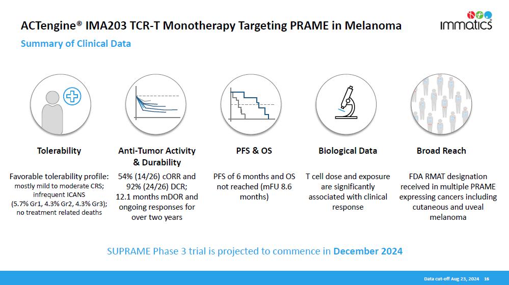 The SUPRAME Phase 3 trial is planned to run globally with sites in the United States and Europe with the initial goal of seeking Biologics License Application (“BLA”) approval in the United States. On October 2, 2024, Immatics also completed a meeting with the Paul Ehrlich Institute (PEI), the German regulatory authority, and determined the same trial design for conducting the clinical trial in Germany.