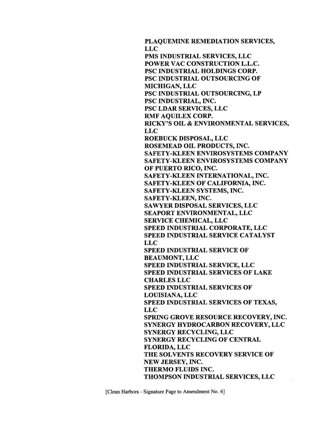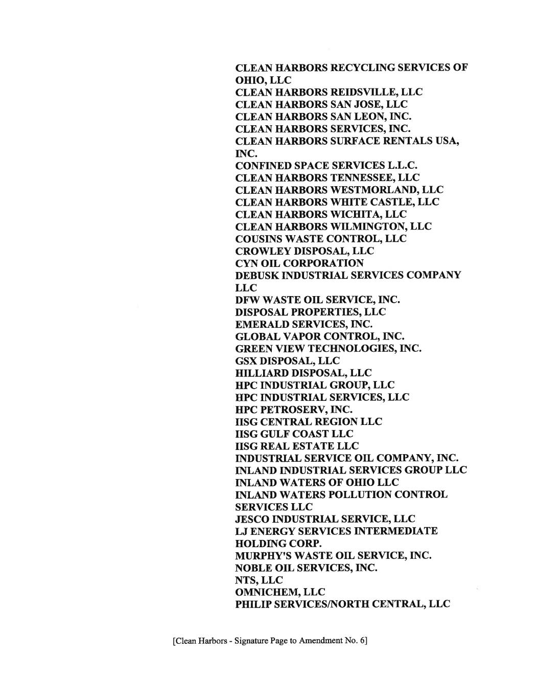 “2020 Senior Notes Indenture” the indenture dated as of July 30, 2012 among Clean Harbors, Inc., the guarantors party thereto and U.S. Bank National Association, relating to the 2020 Senior Notes. “2021 Incremental Amendment Lead Arrangers” has the meaning set forth in Incremental Facility Amendment No. 2. “2021 Incremental Term Commitments” has the meaning set forth in Incremental Facility Amendment No. 2. The amount of the 2021 Incremental Term Commitments as of the Incremental Amendment No. 2 Effective Date is $1,000,000,000. The amount of 2021 Incremental Term Commitments as of the Amendment No. 5 Effective Date is $500,000,000. “2021 Incremental Term Lender” means each Lender that has a 2021 Incremental Term Commitment or that is a holder of 2021 Incremental Term Loans; provided that, on and after the Amendment No. 5 Effective Date, “2021 Incremental Term Lender” shall also include the 2024 Incremental Term Lenders. “2021 Incremental Term Loan Facility” means the 2021 Incremental Term Commitment and the 2021 Incremental Term Loans made thereunder; provided that, on and after the Amendment No. 5 Effective Date, “2021 Incremental Term Loan Facility” shall also include the 2024 Incremental Term Commitments and the 2024 Incremental Term Loans made thereunder. “2021 Incremental Term Loans” means the Incremental Term Loans incurred under the Incremental Facility Amendment No. 2; provided that, on and after the 2024 Amendment No. 5 Effective Date, “2021 Incremental Term Loans” shall include the 2024 Incremental Term Loans incurred under the Incremental Facility Amendment No. 5. The aggregate principal amount of the 2021 Incremental Term Loans, including the 2024 Incremental Term Loans, as of the Amendment No. 5 Effective Date is $1,480,000,000. “2021 Incremental Term Loan Maturity Date” means October 8, 2028. “2021 Senior Notes” means $845.0 million aggregate principal amount of the Borrower’s 5.125% senior notes due 2021. “2021 Senior Notes Indenture” means the indenture dated as of December 7, 2012 among Clean Harbors, Inc., the guarantors party thereto and U.S. Bank National Association, relating to the 2021 Senior Notes. “2024 Incremental Amendment Lead Arrangers” has the meaning set forth in Incremental Facility Amendment No. 5. “2024 Incremental Term Commitments” has the meaning set forth in Incremental Facility Amendment No. 5. The amount of the 2024 Incremental Term Commitments as of the Amendment No. 5 Effective Date is $500,000,000. “2024 Incremental Term Lender” means each Lender that has a 2024 Incremental Term Commitment or that is a holder of 2024 Incremental Term Loans. “2024 Incremental Term Loan Facility” means the 2024 Incremental Term Commitment and the 2024 Incremental Term Loans made thereunder. - 2-
