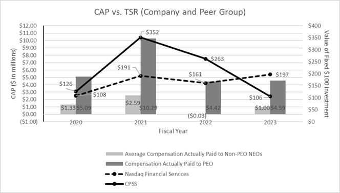 The graph below shows the relationship between (A) (i) the CAP to our PEO and the average CAP to the non-PEO NEOs, and (ii) the Company’s total shareholder returns, and (B) the Company’s total shareholder return versus the peer group’s total shareholder returns across the last four completed fiscal years.