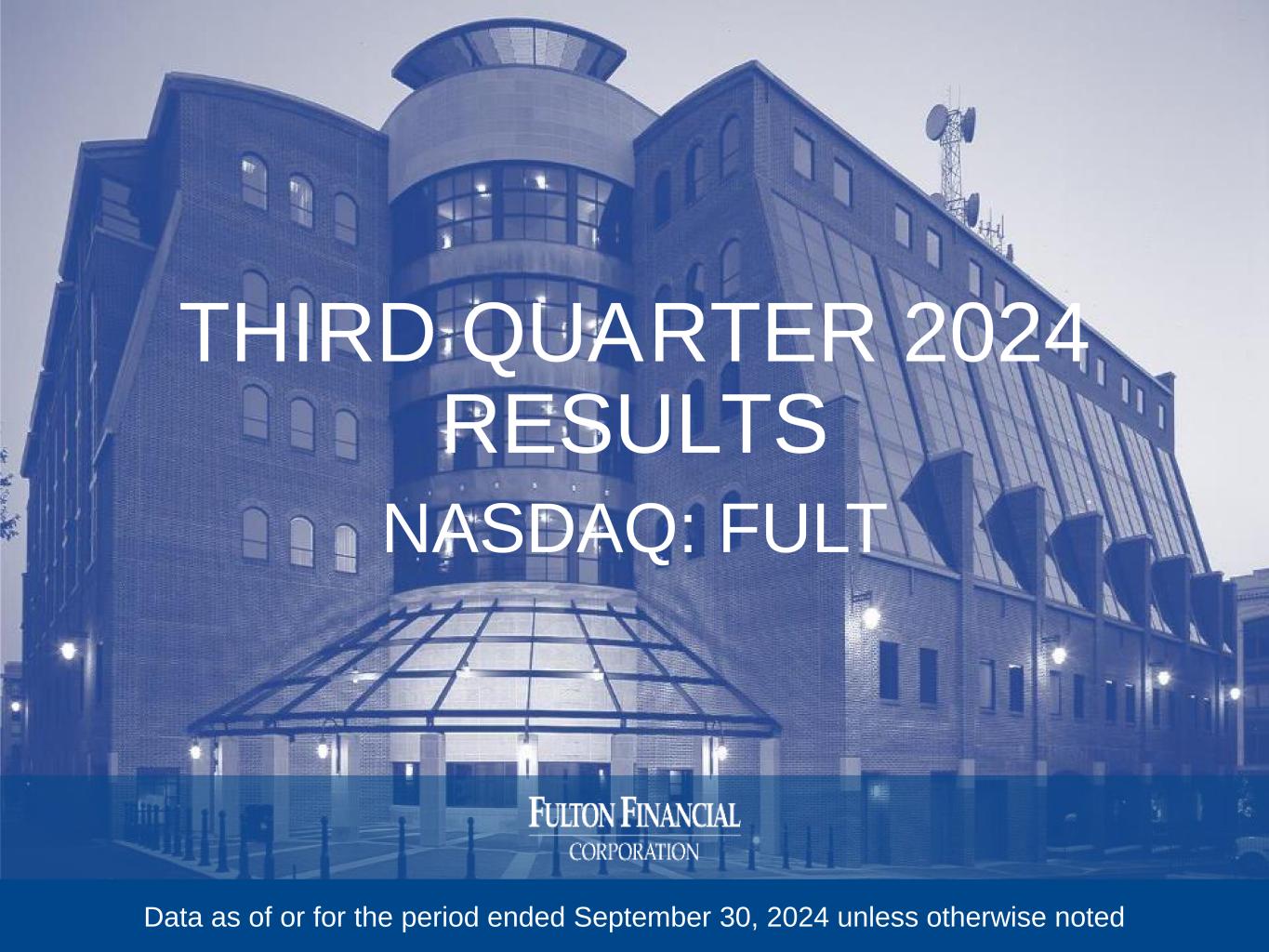 THIRD QUARTER 2024 RESULTS NASDAQ: FULT Data as of or for the period ended September 30, 2024 unless otherwise noted