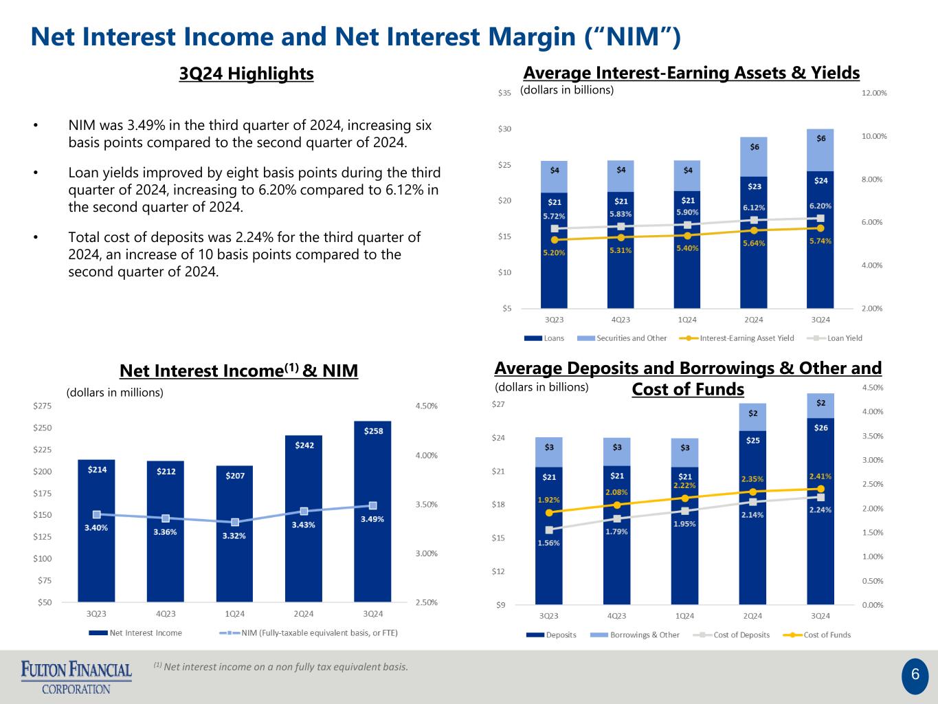 •Solid net interest margin of 3.49%, an increase of six basis points compared to the prior quarter.