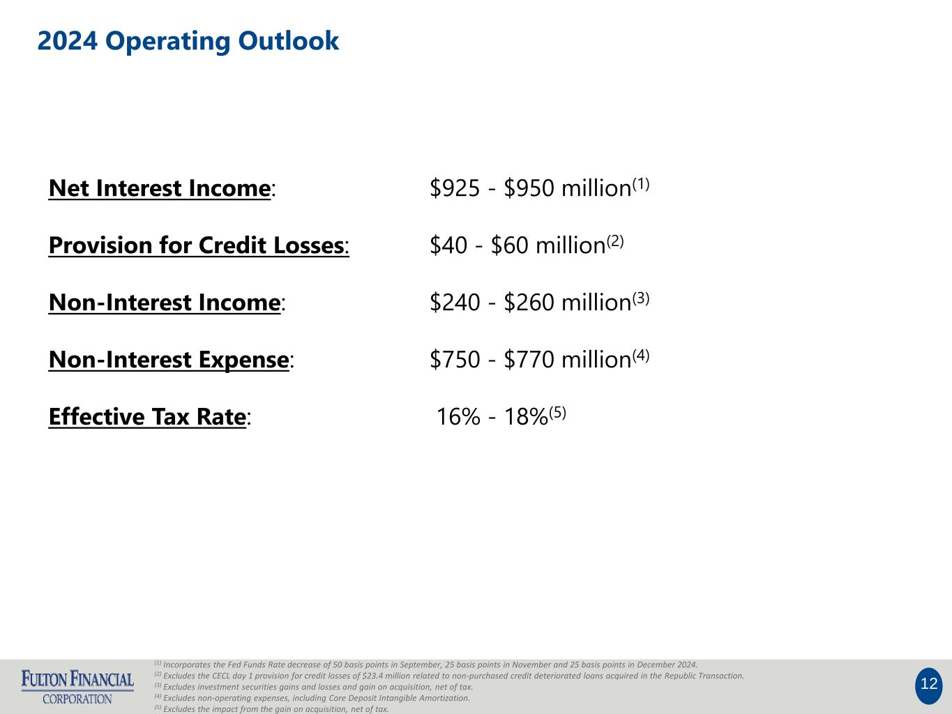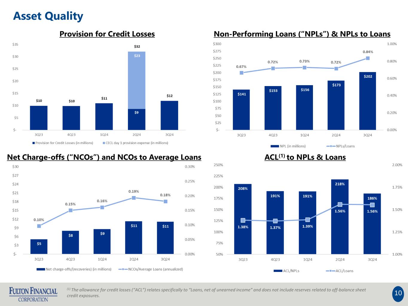 •The provision for credit losses was $11.9 million in the third quarter of 2024 compared to $32.1 million in the second quarter of 2024. The decrease was primarily related to the Acquisition, which included a provision for credit losses of $23.4 million for non-PCD loans in the second quarter of 2024.
