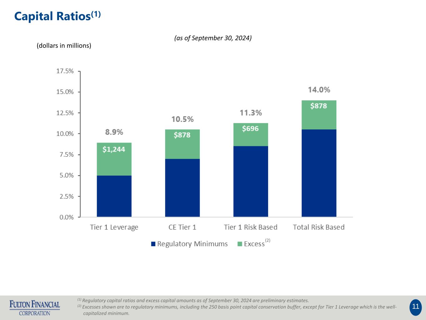 11 (1) Regulatory capital ratios and excess capital amounts as of September 30, 2024 are preliminary estimates. (2) Excesses shown are to regulatory minimums, including the 250 basis point capital conservation buffer, except for Tier 1 Leverage which is the well- capitalized minimum. $1,181 $581 $730 $790 (as of September 30, 2024) (dollars in millions) (2) Capital Ratios(1)