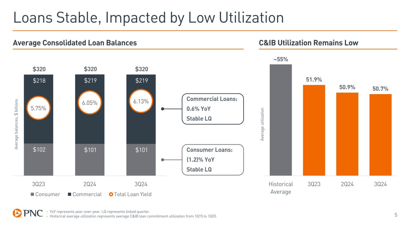 4 Increased Deposits and Grew Tangible Book Value 3Q24 vs. 2Q24 3Q24 vs. 3Q23 Average balances, $ billions 3Q24 $ Change % Change $ Change % Change Total loans $319.6 $(0.3) – $0.1 – Investment securities $142.3 $1.0 1% $2.6 2% Federal Reserve Bank (FRB) balances $44.9 $4.2 10% $7.0 18% Deposits $422.1 $4.9 1% $(0.4) – Borrowed funds $76.1 $(1.4) (2)% $8.6 13% Common shareholders’ equity $47.6 $2.7 6% $5.6 13% Period end 9/30/24 6/30/24 LQ 9/30/23 YoY Basel III CET1 capital ratio 10.3% 10.2% 10bps 9.8% 50bps AOCI ($ billions) $(5.1) $(7.4) $2.4 $(10.3) $5.2 Tangible book value per common share (TBV) (non-GAAP) $96.98 $89.12 9% $78.16 24% – AOCI represents accumulated other comprehensive income (loss). – Tangible book value per common share (non-GAAP) – See Reconciliation in the Appendix. – YoY represents year-over-year. LQ represents linked quarter. – Totals may not sum due to rounding.