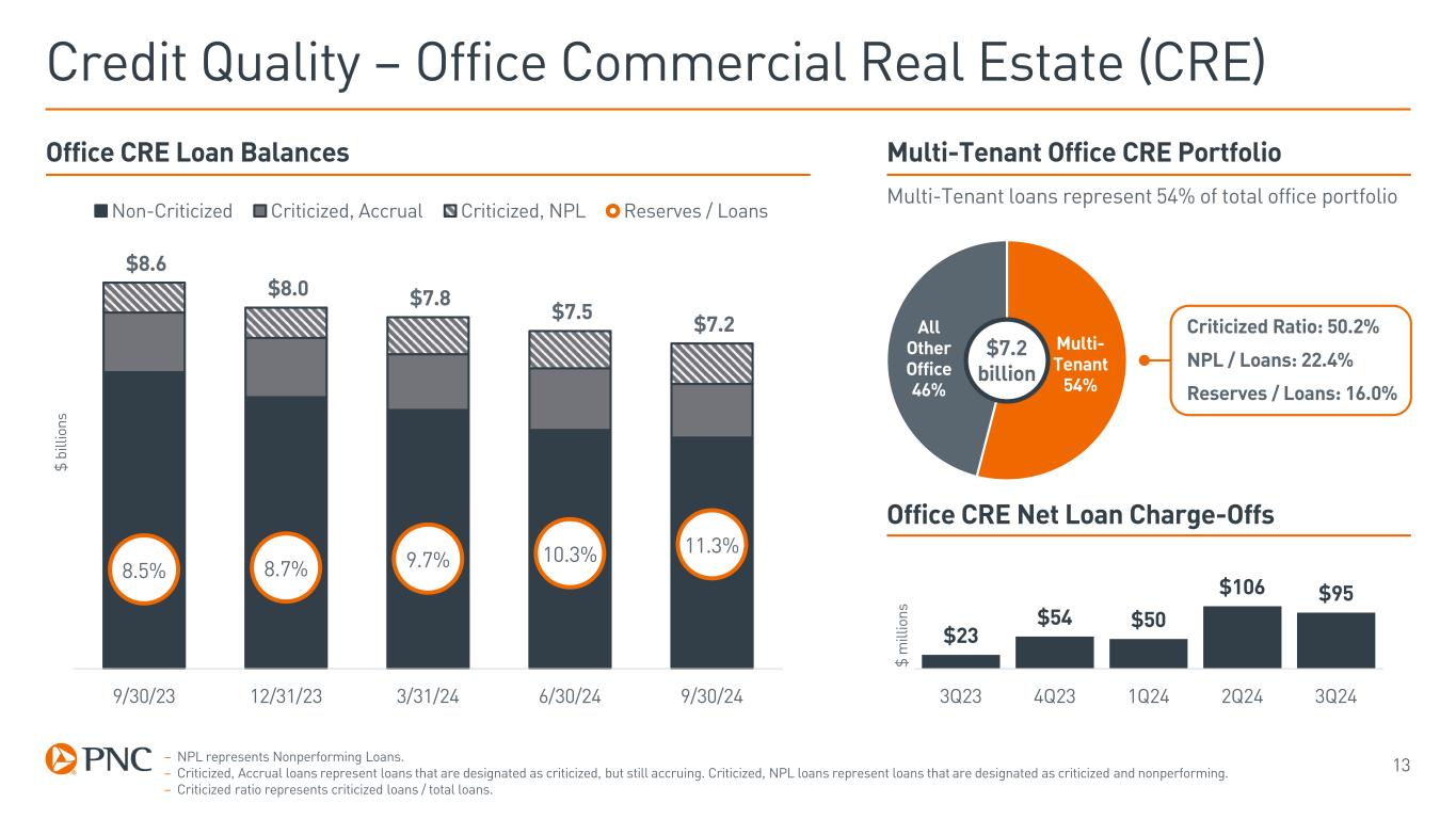 $121 $200 $243 $262 $286 3Q23 4Q23 1Q24 2Q24 3Q24 $253 $290 $278 $270 $286 $1,034 $1,094 $997 $1,002 $989 $1,287 $1,384 $1,275 $1,272 $1,275 9/30/23 12/31/23 3/31/24 6/30/24 9/30/24 12 Credit Quality $1,400 $1,445 $1,457 $1,575 $1,585 $723 $735 $923 $928 $993 $2,123 $2,180 $2,380 $2,503 $2,578 9/30/23 12/31/23 3/31/24 6/30/24 9/30/24 NPLs, ex. CRE CRE NPLs Nonperforming Loans (NPLs) Commercial Consumer 3Q23 4Q23 1Q24 2Q24 3Q24 NPLs / Total Loans (Period end) 0.67% 0.68% 0.74% 0.78% 0.80% Delinquencies / Total Loans (Period end) 0.40% 0.43% 0.40% 0.40% 0.40% NCOs / Average Loans 0.15% 0.24% 0.30% 0.33% 0.36% Allowance for Credit Losses to Total Loans 1.70% 1.70% 1.68% 1.67% 1.65% Credit Quality Metrics Delinquencies Net Loan Charge-Offs (NCOs) – NPLs, ex. CRE represent nonperforming loans excluding commercial real estate nonperforming loans. CRE NPLs represent commercial real estate nonperforming loans. – NCOs / Average Loans represent annualized net loan charge-offs (NCOs) to average loans for the three months ended. – Delinquencies represent accruing loans past due 30 days or more. Delinquencies to Total Loans represent delinquencies divided by period end loans. – NCOs, ex. CRE represent NCOs excluding commercial real estate NCOs. CRE NCOs represent commercial real estate NCOs. $ m ill io ns NCOs, ex. CRE CRE NCOs