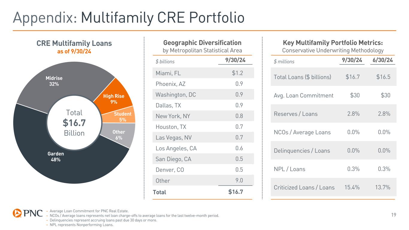 Appendix: CRE Portfolio Represents 11% of Total Loans 18 Commercial Real Estate 11% Total $321.4 Billion Total Loans as of 9/30/24 PNC’s Commercial Real Estate (CRE) Portfolio $ billions 9/30/24 % of Total Loans Multifamily $16.7 5.2% Office 7.2 2.2% Industrial / Warehouse 4.0 1.2% Retail 2.2 0.7% Seniors Housing 1.8 0.6% Hotel / Motel 1.7 0.5% Mixed Use 0.3 0.1% Other 1.2 0.4% Total $35.1 10.9%