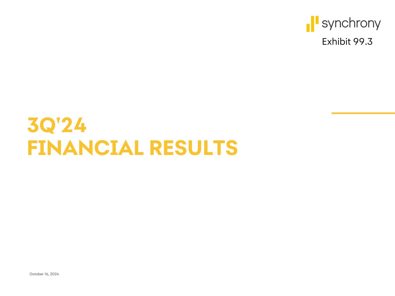 For Immediate Release Synchrony Financial (NYSE: SYF) October 16, 2024 | ![]() | |||||||