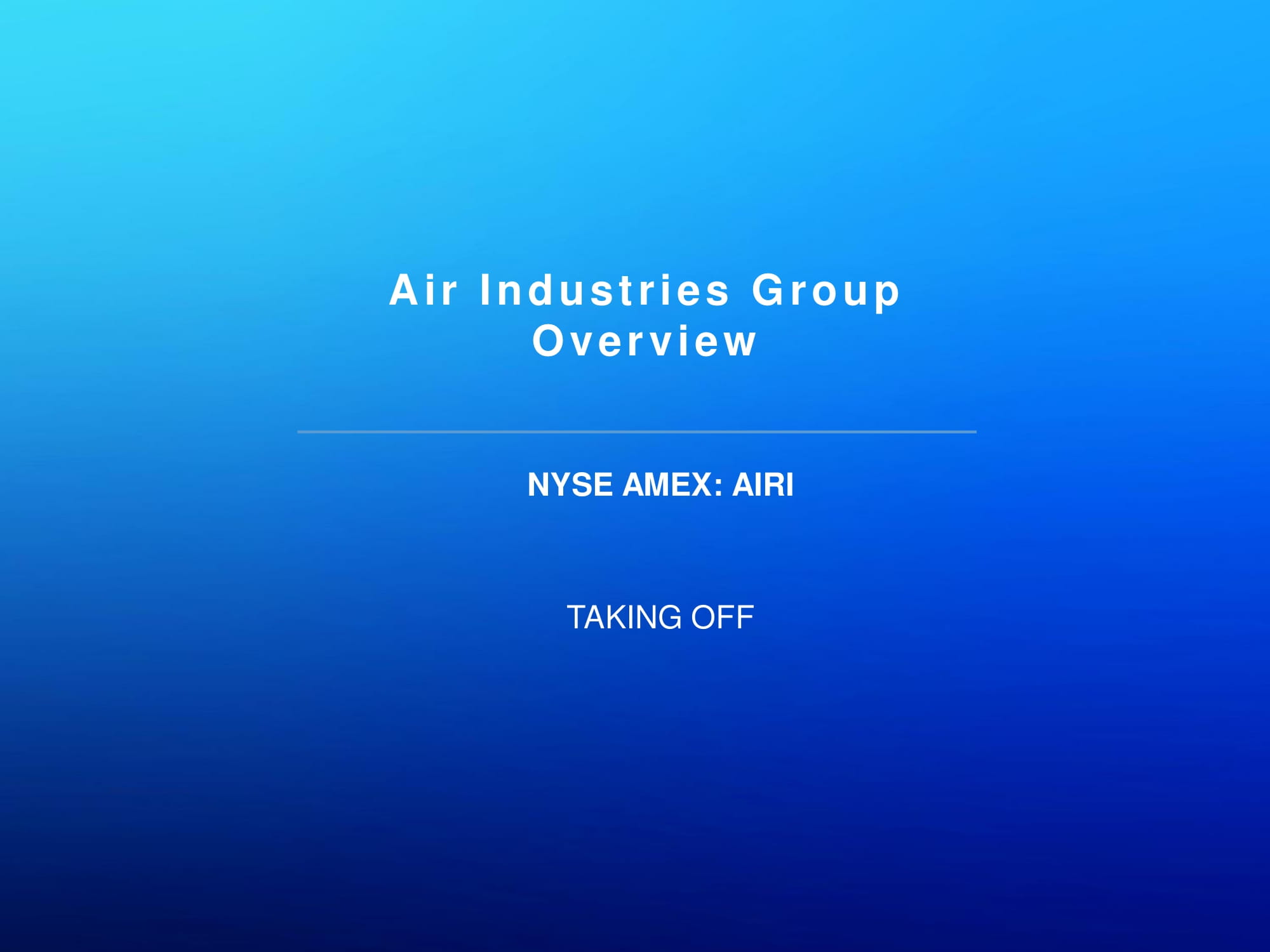 Air Industries Group Overview NYSE AMEX: AIRI TAKING OFF