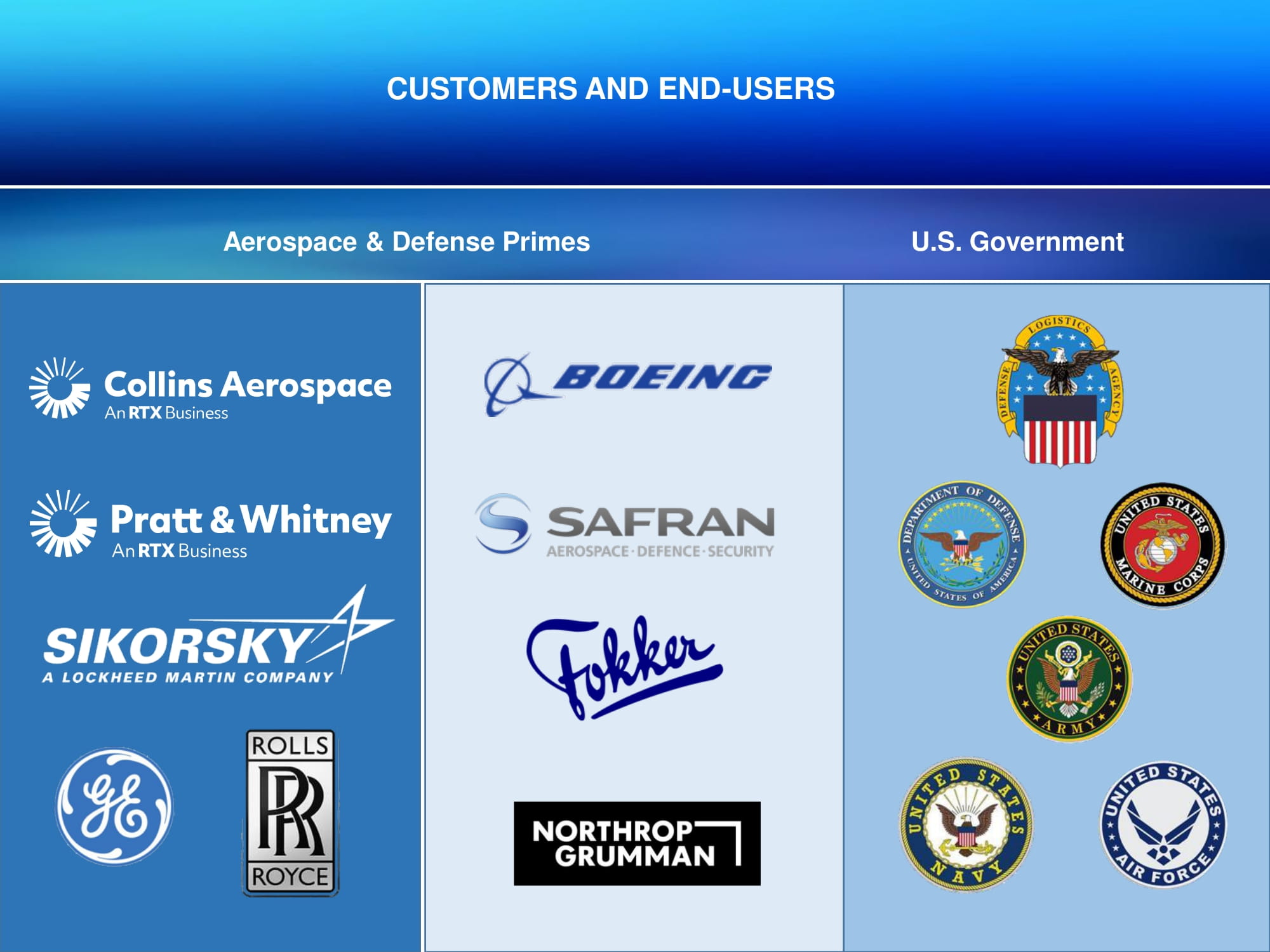 CUSTOMERS AND END - USERS Aerospace & Defense Primes U.S. Government