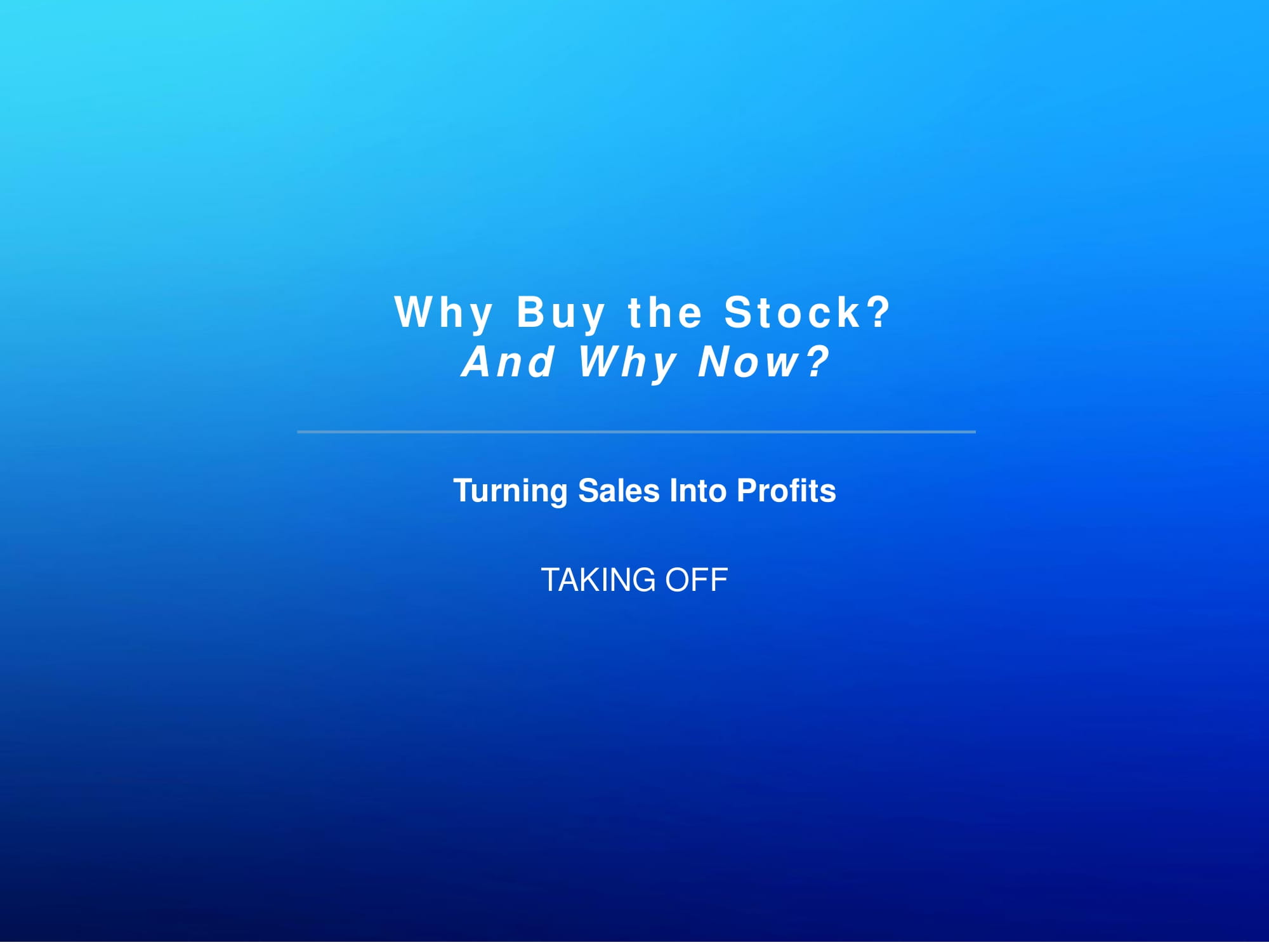 Why Buy the Stock? And Why Now? Turning Sales Into Profits TAKING OFF