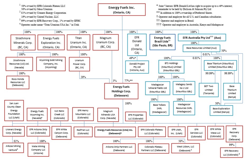 ENERGY FUELS INC. – ENTITY ORGANIZATION CHART 2024