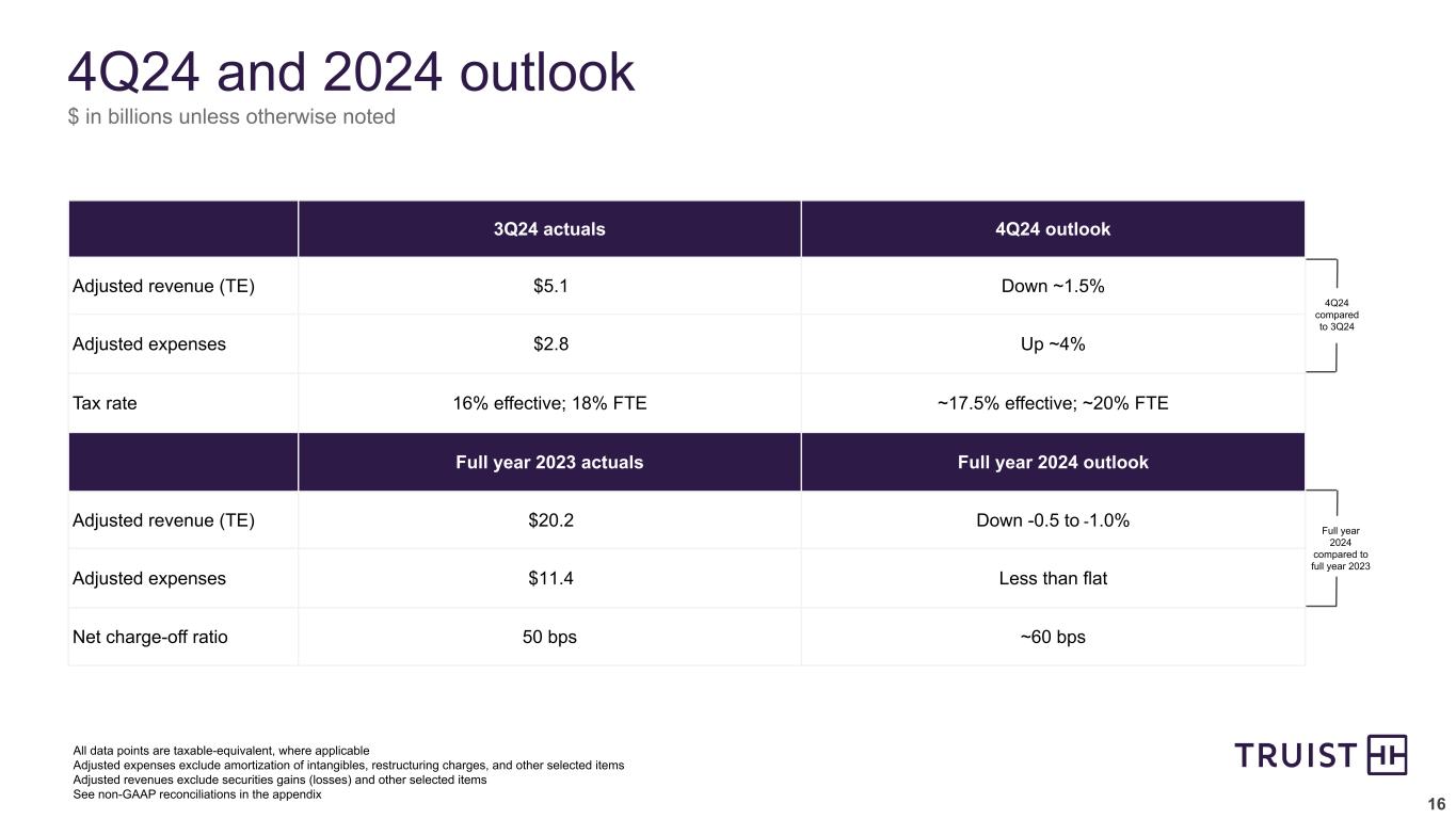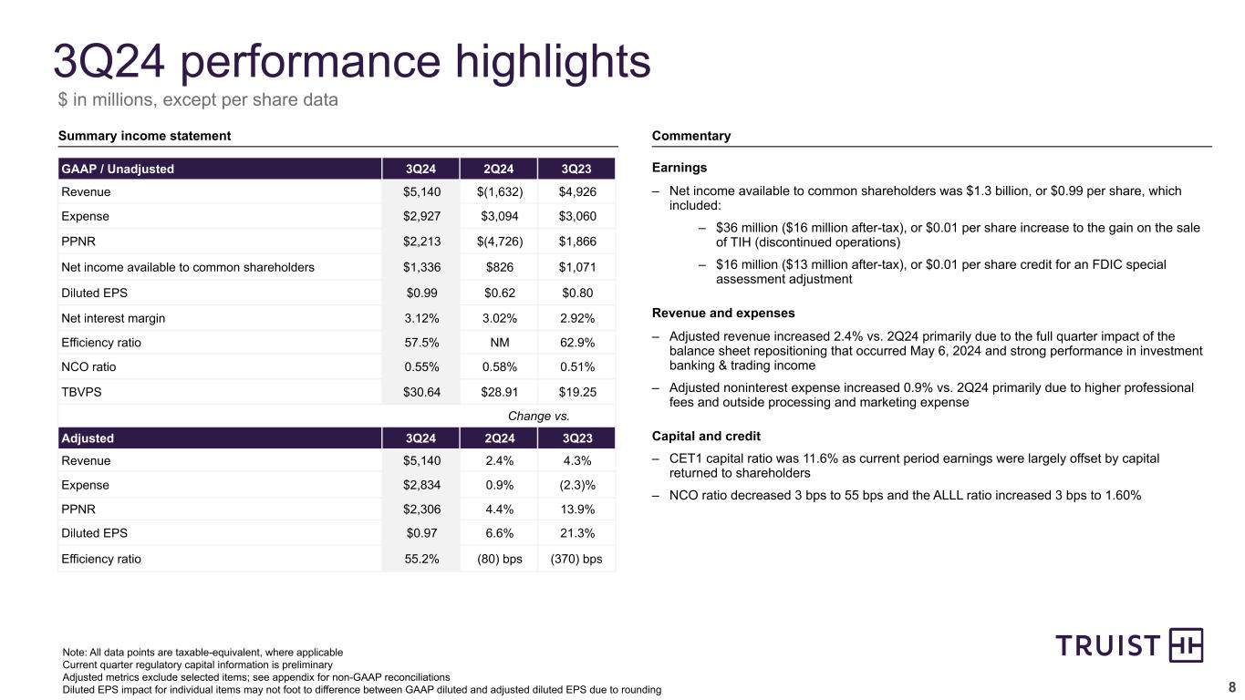 (1)Includes certain selected items from the consolidated statements of income. A reconciliation of non-GAAP measures is included in the appendix to Truist’s Third Quarter 2024 Earnings Presentation.