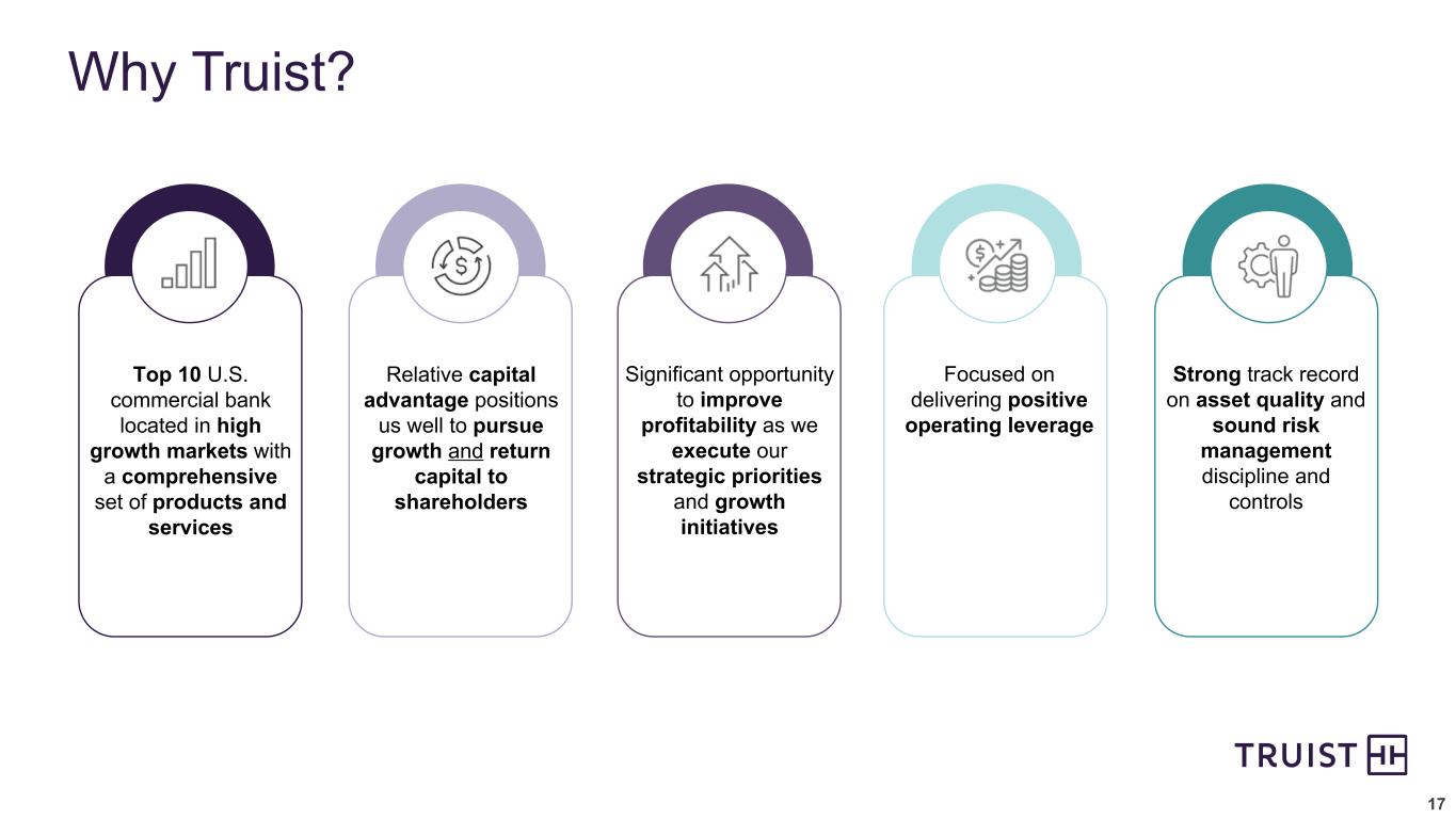 17 Top 10 U.S. commercial bank located in high growth markets with a comprehensive set of products and services Relative capital advantage positions us well to pursue growth and return capital to shareholders Significant opportunity to improve profitability as we execute our strategic priorities and growth initiatives Focused on delivering positive operating leverage Strong track record on asset quality and sound risk management discipline and controls Why Truist?