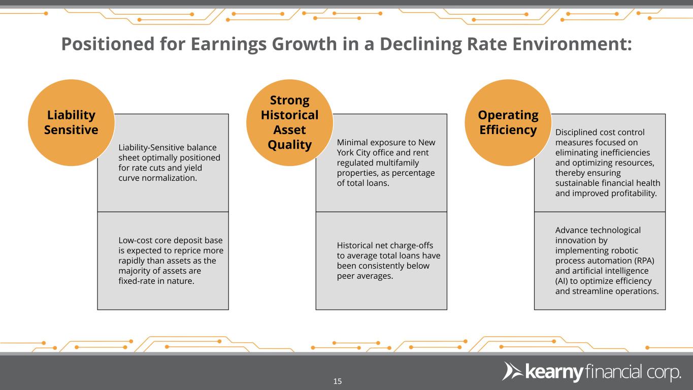 15 Liability-Sensitive balance sheet optimally positioned for rate cuts and yield curve normalization. Low-cost core deposit base is expected to reprice more rapidly than assets as the majority of assets are fixed-rate in nature. Liability Sensitive Minimal exposure to New York City office and rent regulated multifamily properties, as percentage of total loans. Historical net charge-offs to average total loans have been consistently below peer averages. Strong Historical Asset Quality Disciplined cost control measures focused on eliminating inefficiencies and optimizing resources, thereby ensuring sustainable financial health and improved profitability. Advance technological innovation by implementing robotic process automation (RPA) and artificial intelligence (AI) to optimize efficiency and streamline operations. Operating Efficiency Positioned for Earnings Growth in a Declining Rate Environment: