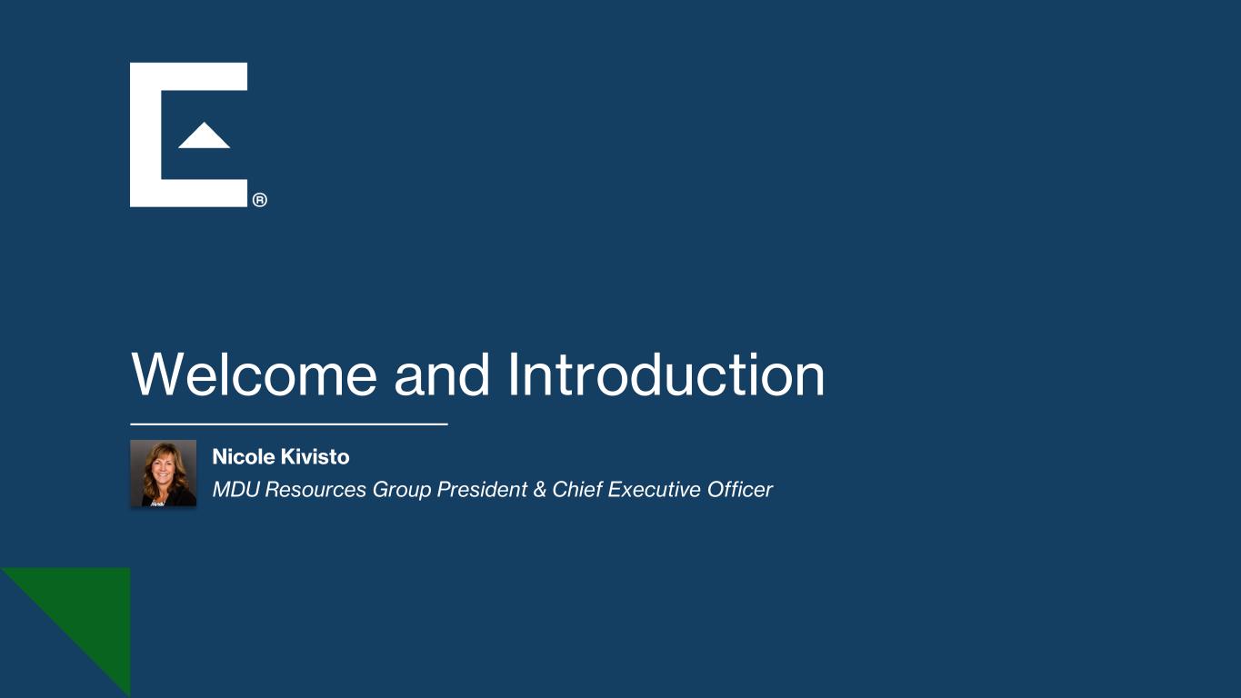 Welcome and Introduction Nicole Kivisto MDU Resources Group President & Chief Executive Officer