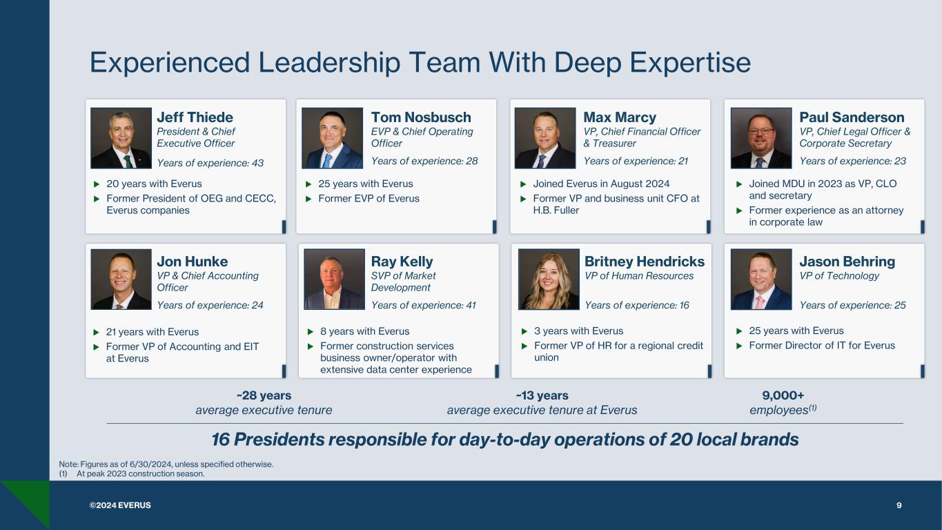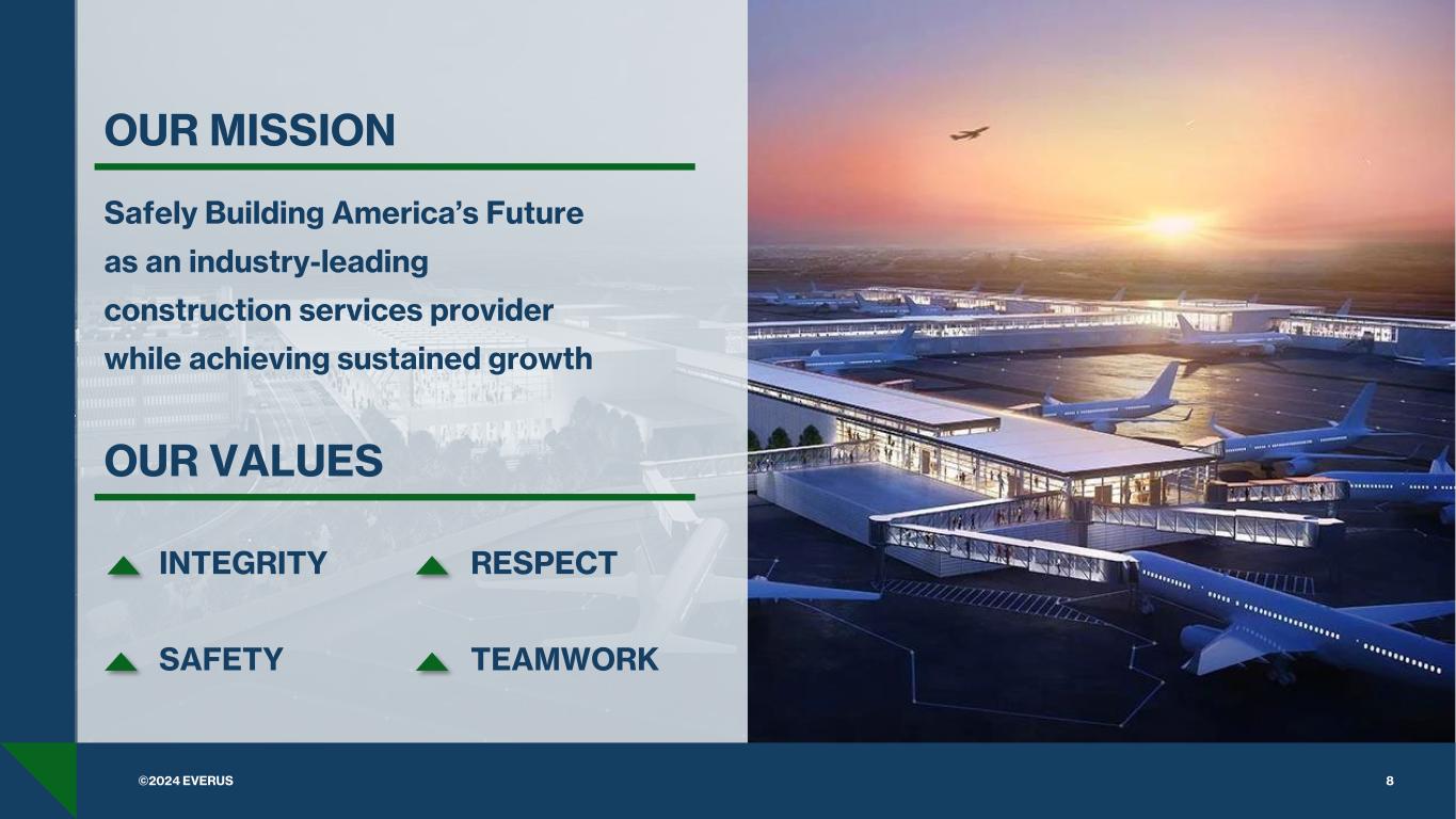 ©2024 EVERUS 8 OUR MISSION Safely Building America’s Future as an industry-leading construction services provider while achieving sustained growth OUR VALUES SAFETY RESPECT TEAMWORK INTEGRITY