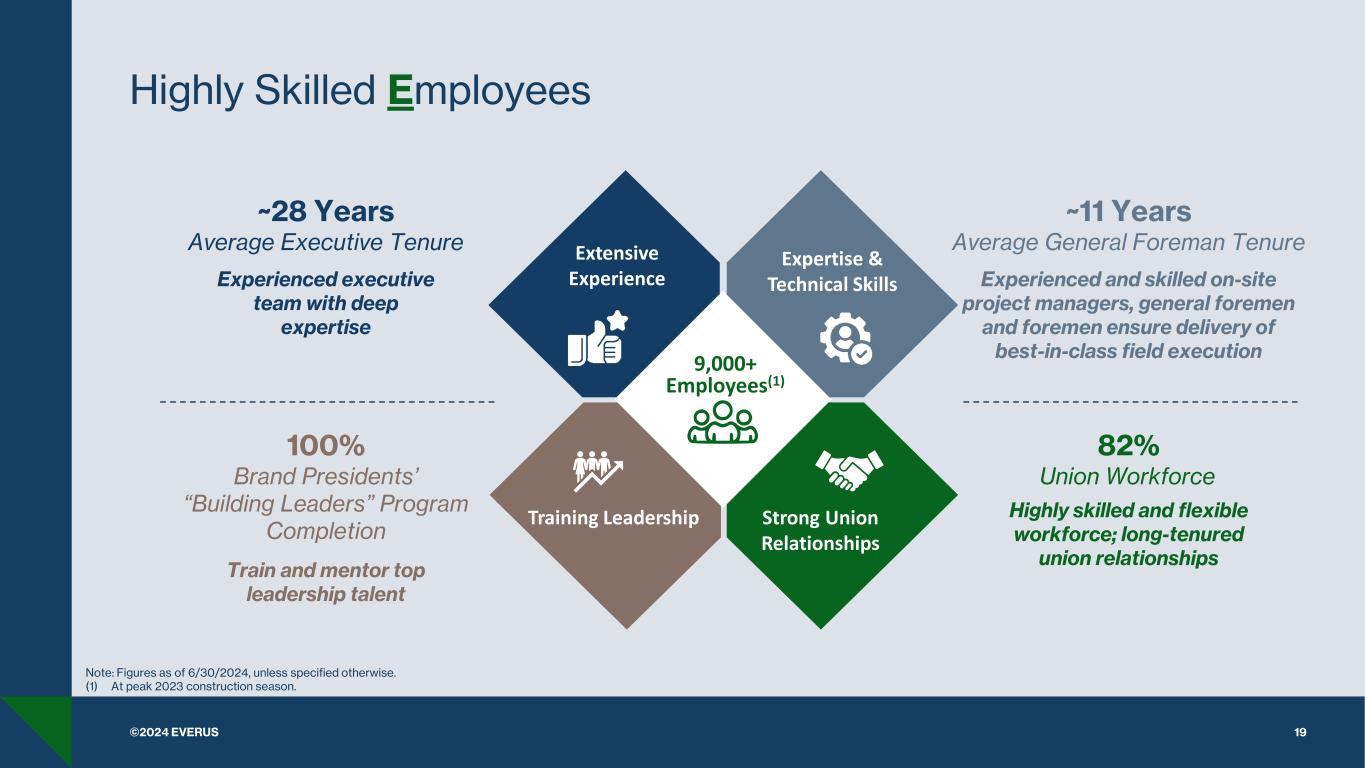©2024 EVERUS 18 Attract, retain and train premier talent Employees Create long-term value with sustained profitable growth Value Maintain and grow customer relationships Relationships Lead the industry in safety and consistent high-quality execution Execution