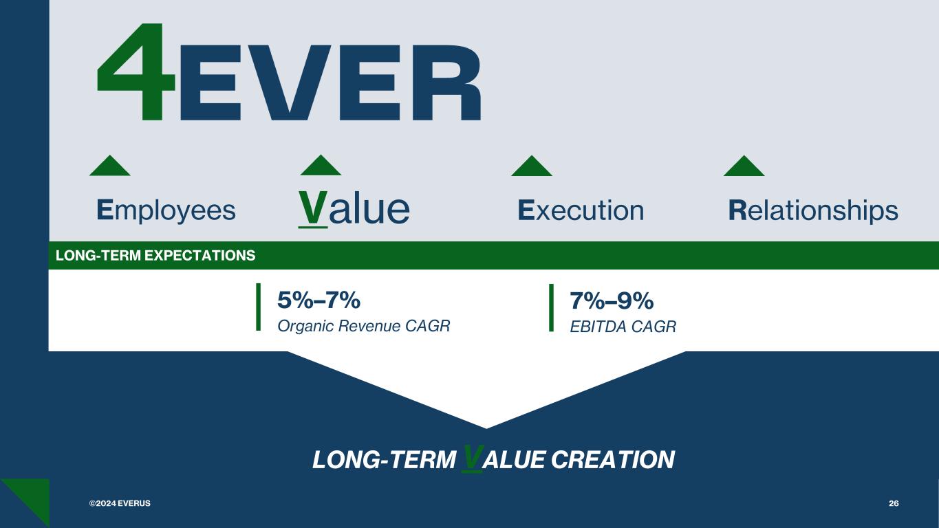 ©2024 EVERUS 26 LONG-TERM VALUE CREATION Employees Value Execution Relationships LONG-TERM EXPECTATIONS 7%–9% EBITDA CAGR 5%–7% Organic Revenue CAGR LONG-TERM VALUE CREATION