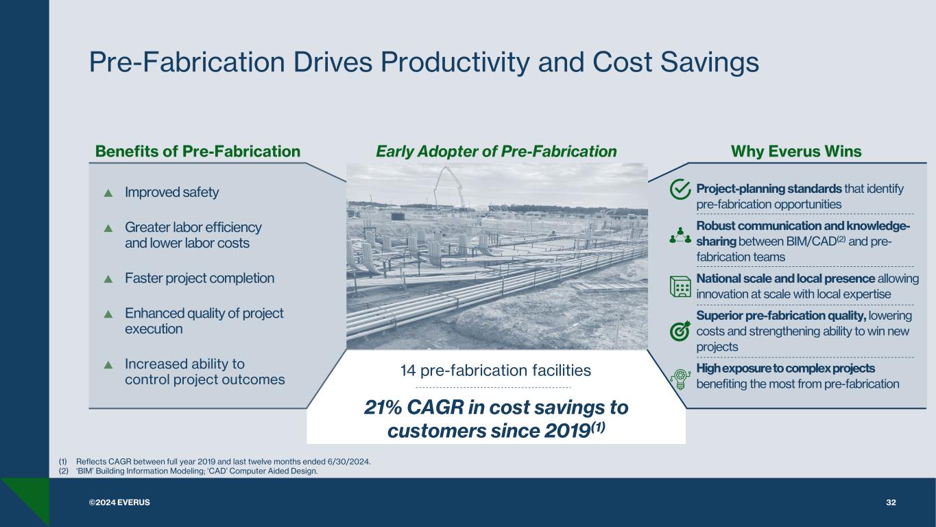 31 Systematically Share ‘Lessons Learned’ Across Brands Leverage Unique Pre-Construction Design-Assist Capabilities Position Safety as a Core Value, Not Only a Priority Efficiently Scale Highly Skilled Workforce Continuously Train and Develop Workforce Skills ©2024 EVERUS Deploy Best Practices in Detailed Project Planning Execution Playbook for Repeatable High-Quality Results HIGH-QUALITY OUTCOMES Resilient Margin Profile New Project Wins Sustained Growth High Employee Retention High Customer Retention