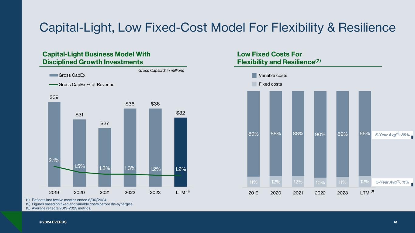 Strong Backlog and Revenue Growth ©2024 EVERUS 40 Track Record of Strong Backlog Growth … … Delivering Sustained Long-Term Revenue Growth $1,849 $2,096 $2,052 $2,699 $2,854 $2,682 2019 2020 2021 2022 2023 LTM Revenue $ in millionsBacklog $ in millions (1) Reflects last twelve months ended 6/30/2024. (1) $1,144 $1,273 $1,385 $2,131 $2,011 $2,403 2019 2020 2021 2022 2023 As of 6/30/2024