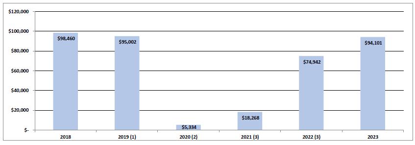 | 2025 | 100,000 | 3,664 | 103,664 | 4.5 | % | 3.93 | % | |||||||||||||