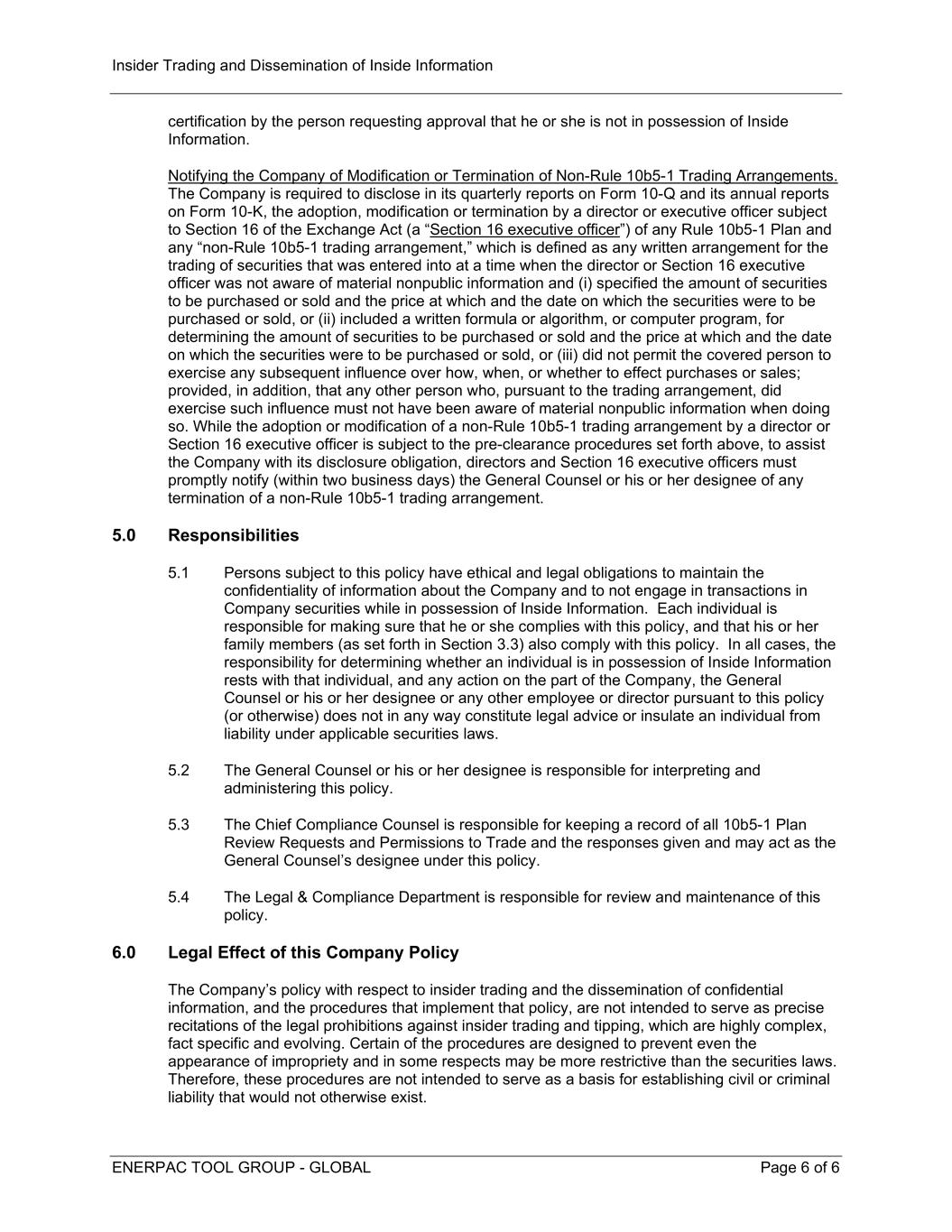 A signed original of this written statement required by Section 906, or other document authenticating, acknowledging, or otherwise adopting the signature that appears in typed form within the electronic version of this written statement required by Section 906, has been provided to Enerpac Tool Group Corp. and will be retained by Enerpac Tool Group Corp. and furnished to the Securities and Exchange Commission or its staff upon request.