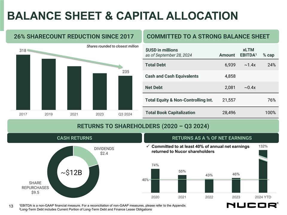 Nucor Reports Results for the Third Quarter of 2024 (Continued)