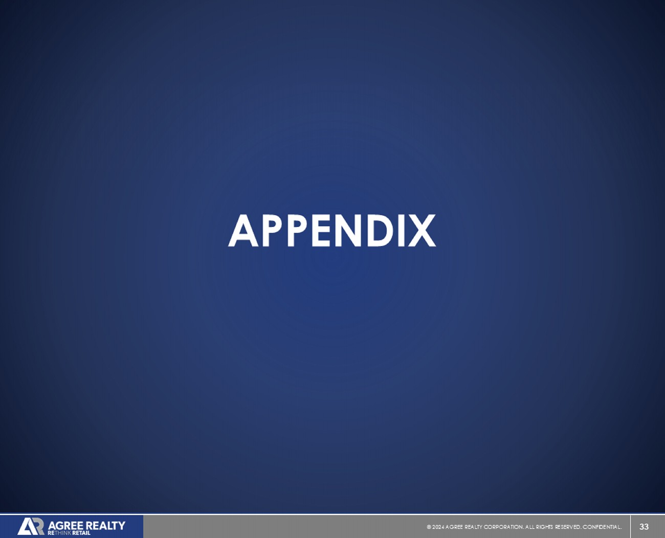 33 © 20 24 AGREE REALTY CORPORATION . ALL RIGHTS RESERVED. CONFIDENTIAL. APPENDIX