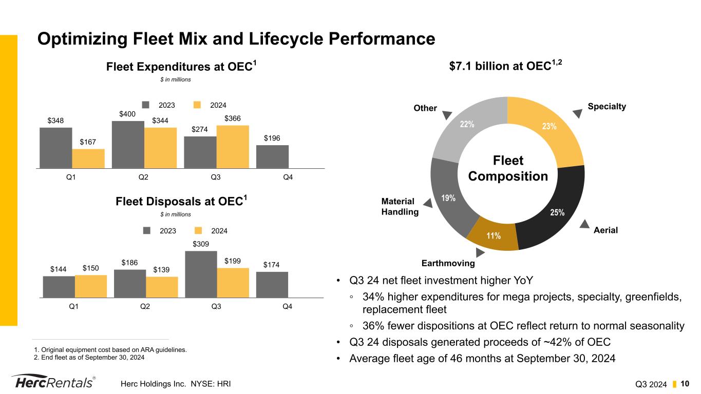•As of September 30, 2024, the Company's total fleet was approximately $7.1 billion at OEC.
