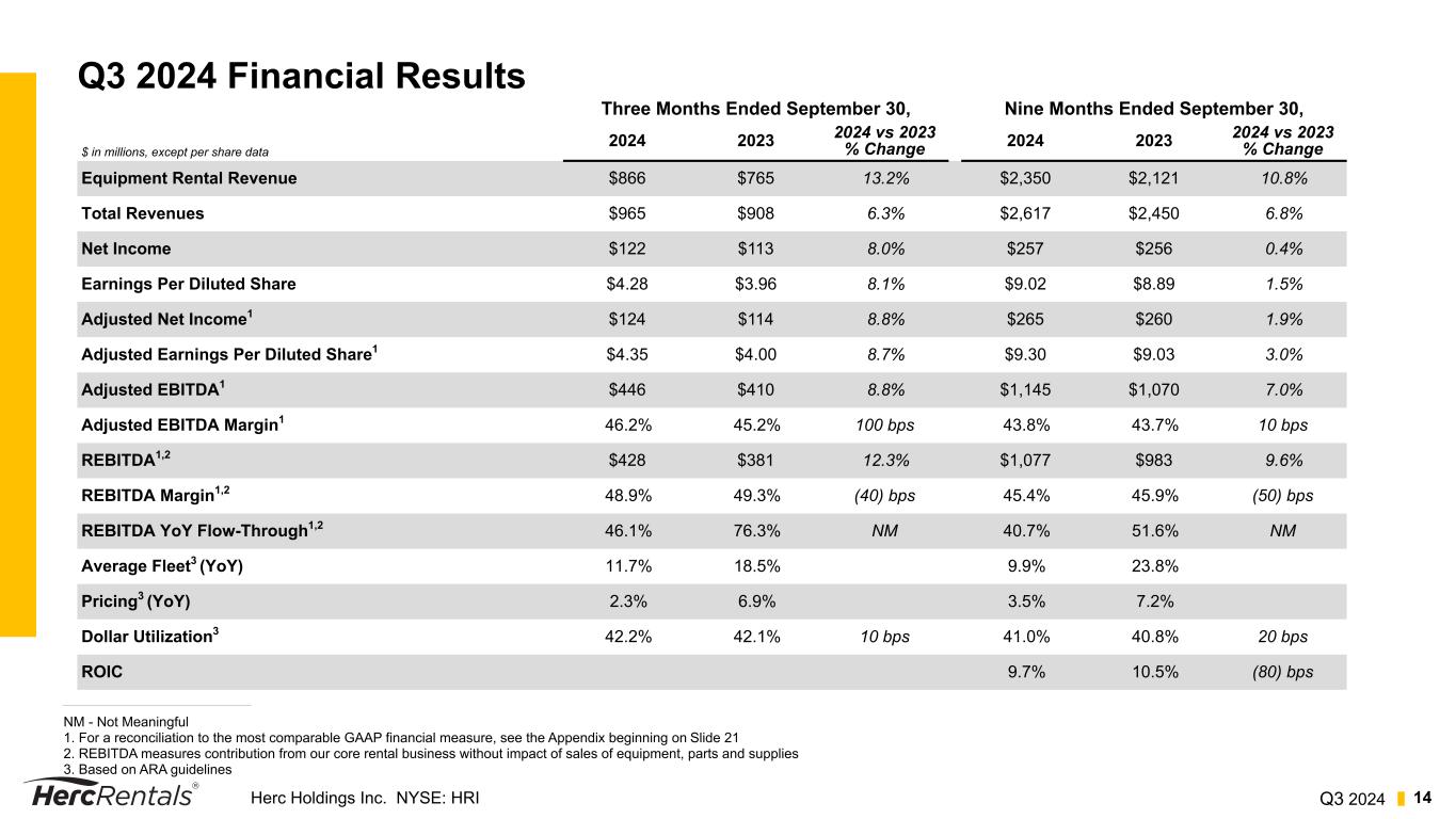 DocumentHerc Holdings Reports Nine Months 2024 Results and