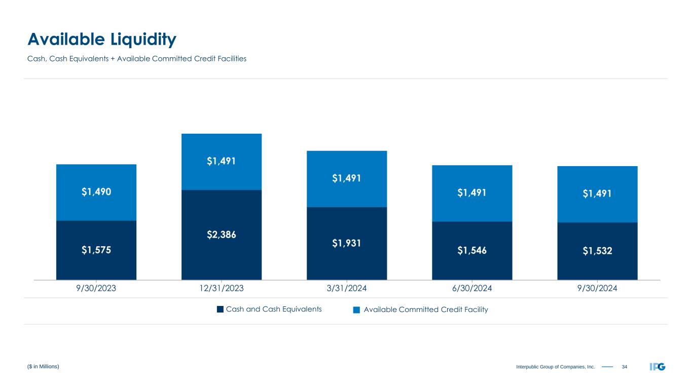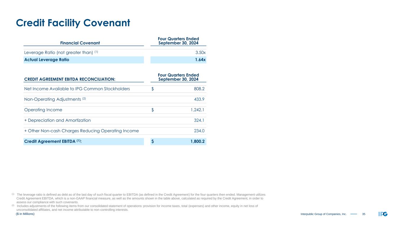 34Interpublic Group of Companies, Inc. ($ in Millions) Available Liquidity Cash, Cash Equivalents + Available Committed Credit Facilities Available Committed Credit FacilityCash and Cash Equivalents
