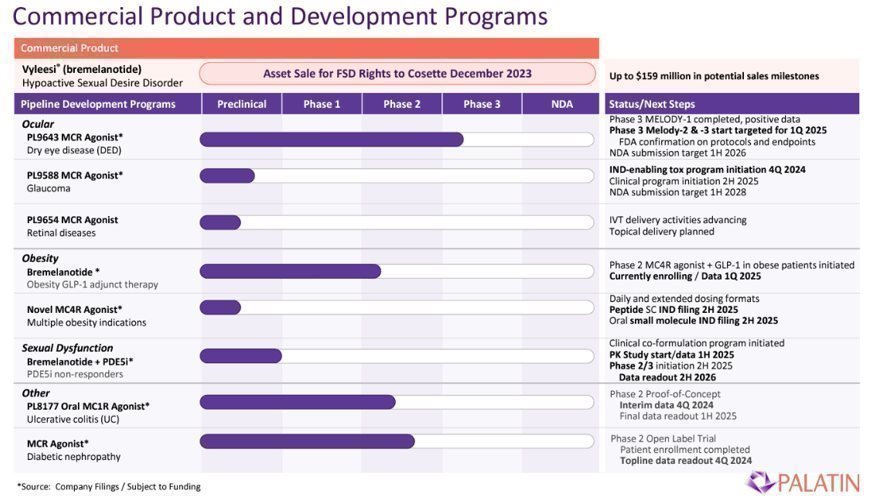 | o | a co-formulation of bremelanotide with a phosphodiesterase type 5 inhibitor (PDE5i) for treatment of erectile dysfunction in patients that do not respond to PDE5i monotherapy, scheduled to start a pharmacokinetic study in the first half of calendar year 2025; | |