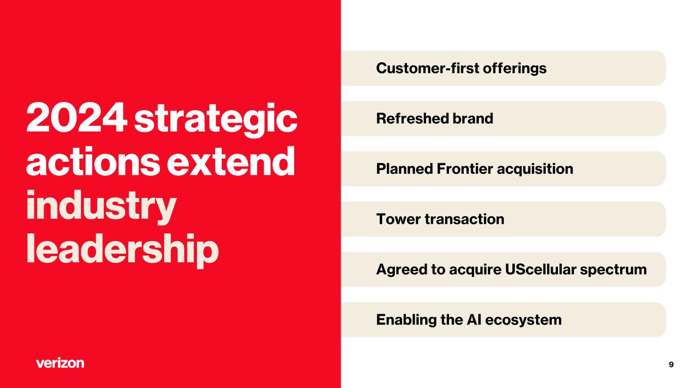 Refreshed brand Enabling the AI ecosystem Planned Frontier acquisition Tower transaction Agreed to acquire UScellular spectrum Customer-first offerings 9 Transformative Actions Extend Industry Leadership 2024 strategic actions extend industry leadership