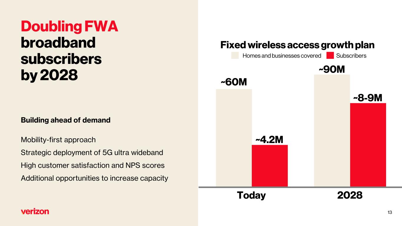 ●Verizon is expecting 8-9 million fixed wireless subscribers, doubling its current base, by 2028 and accelerating coverage to 90 million households in the same time period.