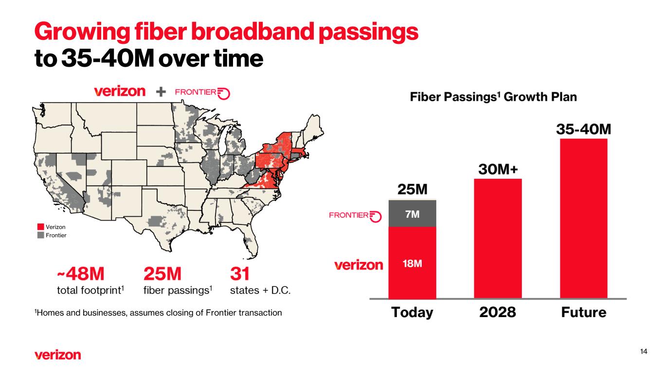 Growing fiber broadband passings to 35-40M over time Verizon Frontier 1Homes and businesses, assumes closing of Frontier transaction 7M 18M 14