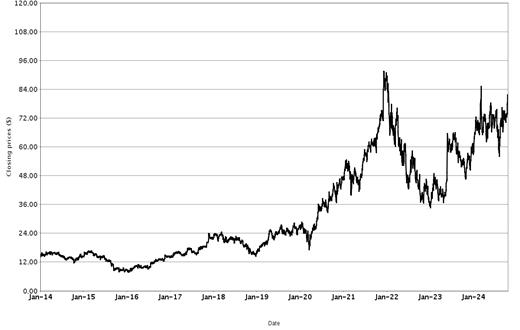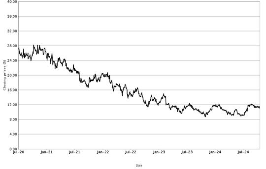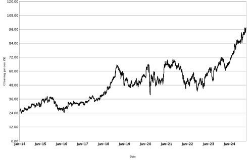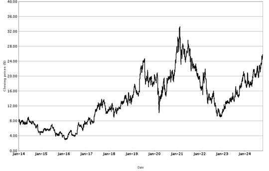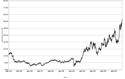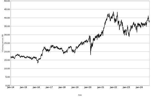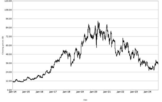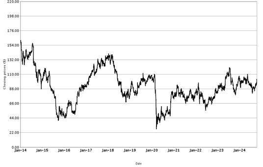 The following graphs set forth historical closing values of the Basket Underliers for the period from January 1, 2014 (or from the initial listing date, if later) to October 18, 2024. We obtained the information in the graphs from Bloomberg Financial Markets, without independent investigation. We cannot give you assurance that the performance of the Basket Underliers will result in the return of all of your initial investment.