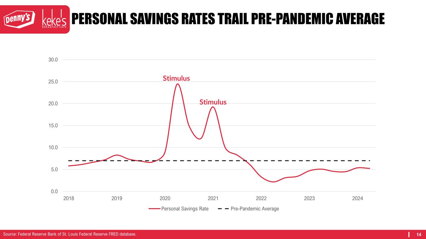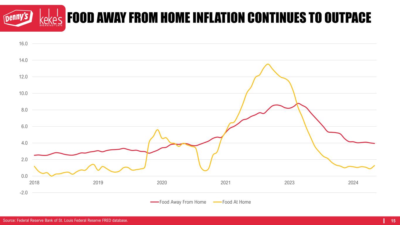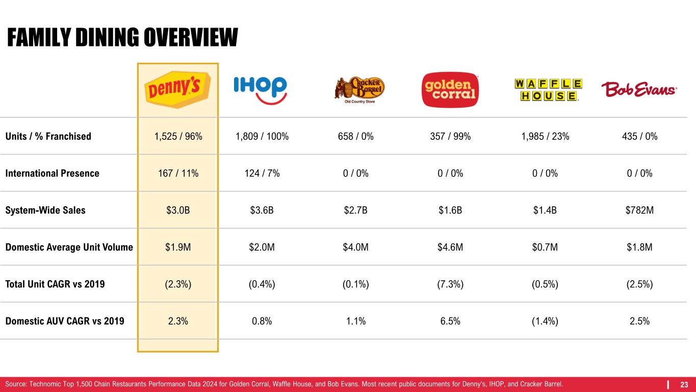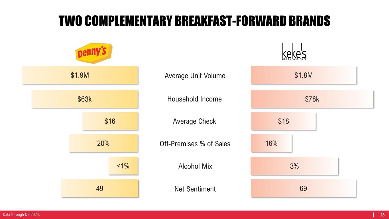 •Denny's domestic system-wide same-restaurant sales** were (0.1%) compared to the equivalent fiscal period in 2023, including (0.1%) at domestic franchised restaurants and (0.4%) at company restaurants.