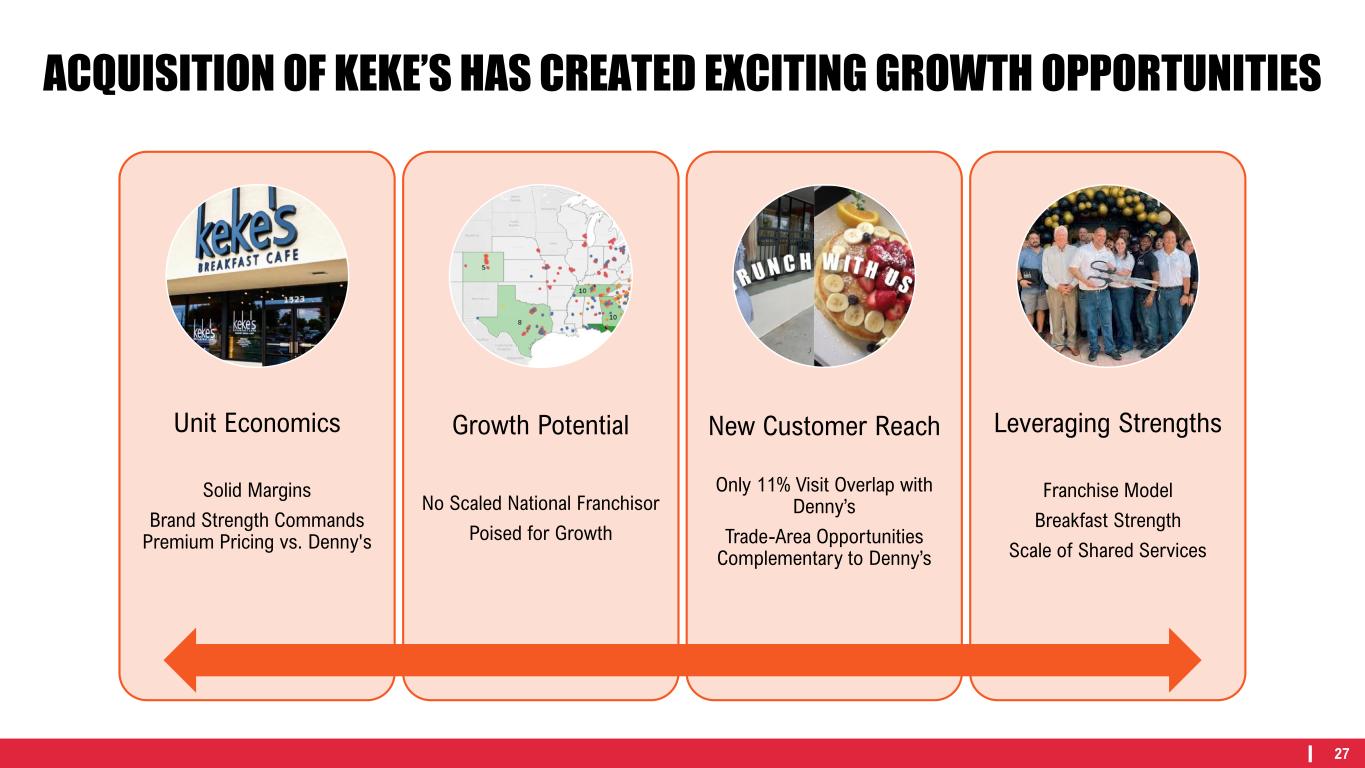 The Company invested $7.8 million in cash capital expenditures, which included Keke's new development and Denny's company remodels.