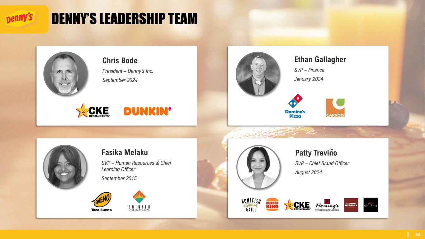 100 EXPERIENCED LEADERSHIP Franchised Structure Visionary Leadership Winning Recipe Denny’s Partnership 1. Experienced Leadership Team 2. Small but mighty 3. Culture of Accountability, Recognition & Collaboration