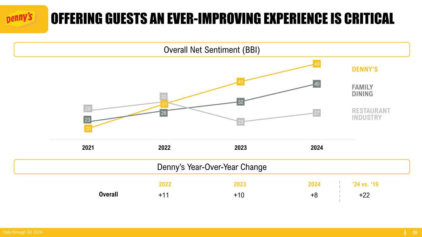 35 OFFERING GUESTS AN EVER-IMPROVING EXPERIENCE IS CRITICAL DENNY’S FAMILY DINING RESTAURANT INDUSTRY Overall Net Sentiment (BBI) Denny’s Year-Over-Year Change +11 +10 +8 +22Overall ’24 vs. ‘192022 2023 2024 20 31 41 49 23 28 32 40 28 32 23 27 2021 2022 2023 2024 Data through Q3 2024.