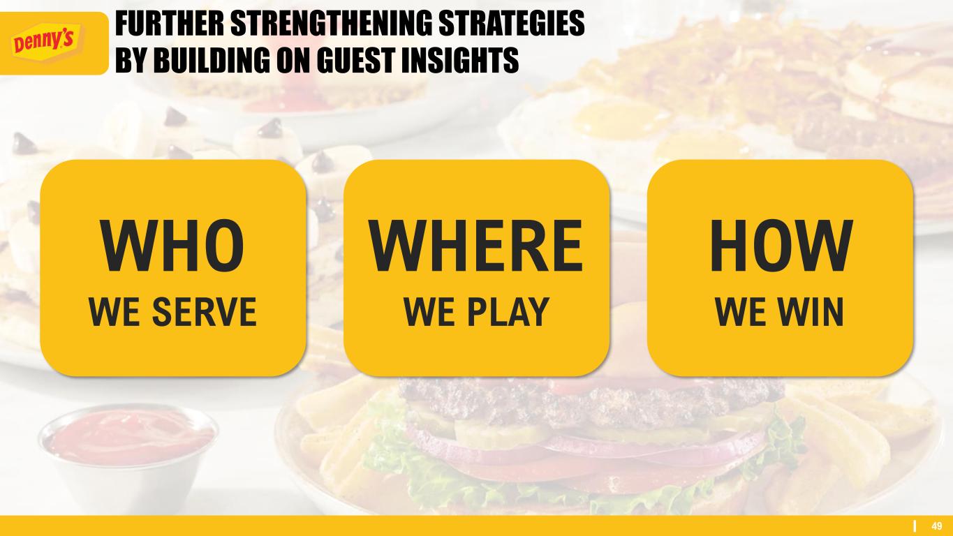 49 FURTHER STRENGTHENING STRATEGIES BY BUILDING ON GUEST INSIGHTS WHO WE SERVE WHERE WE PLAY HOW WE WIN