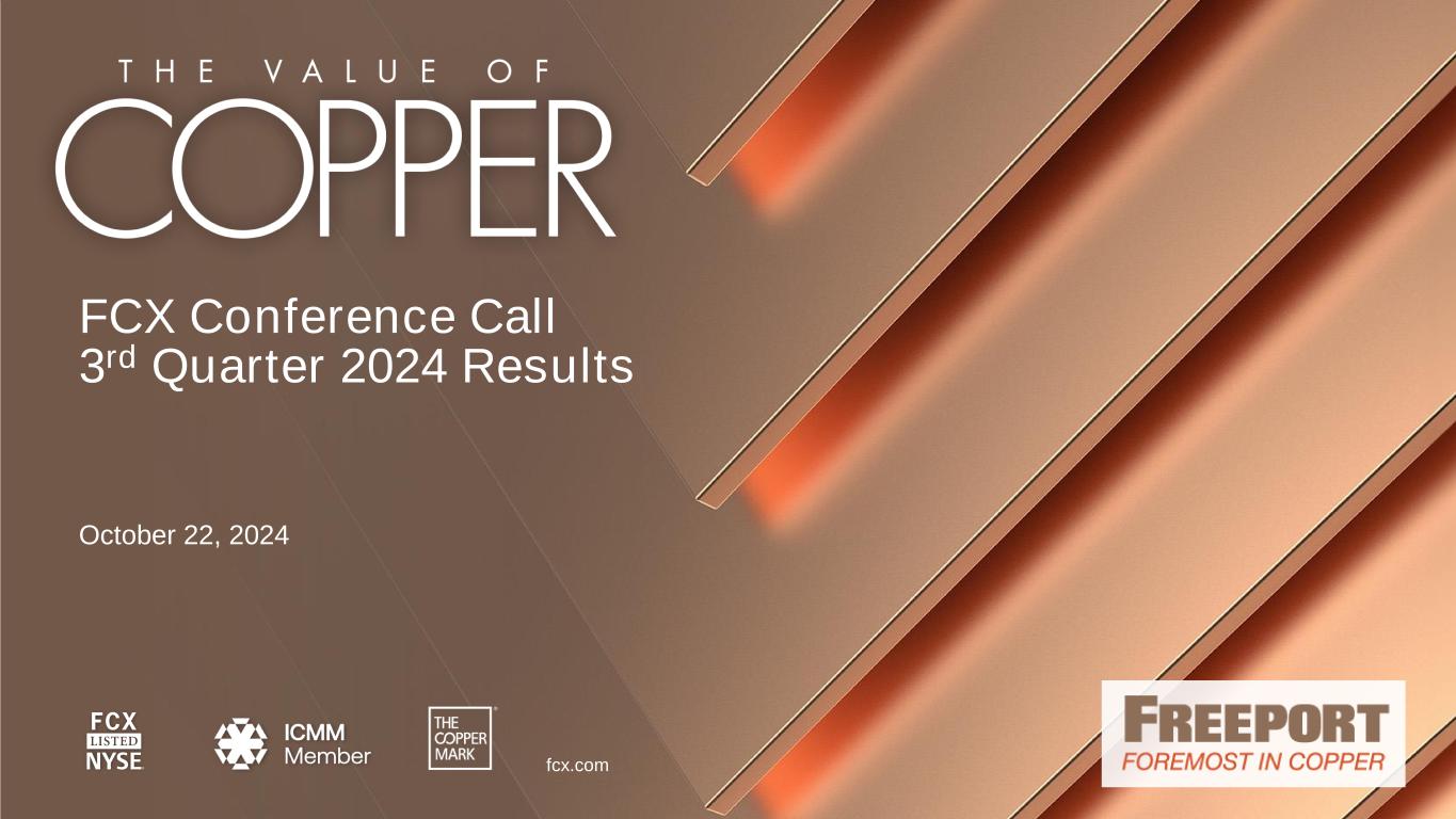 | Slides presented in connection with FCX’s third-quarter 2024 earnings conference call conducted via the internet on October 22, 2024. |