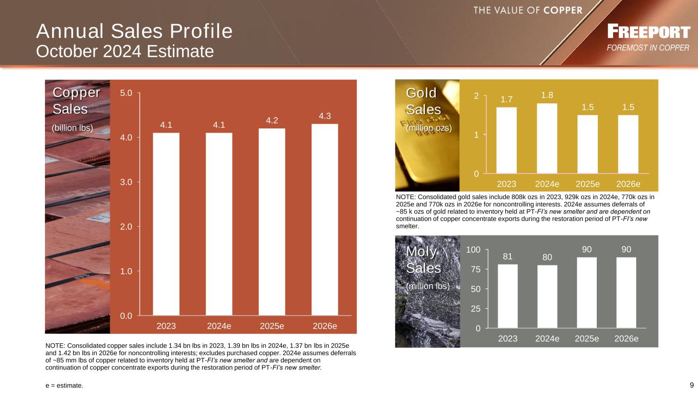 ▪Consolidated sales totaled 1.0 billion pounds of copper, 558 thousand ounces of gold and 19 million pounds of molybdenum in third-quarter 2024.